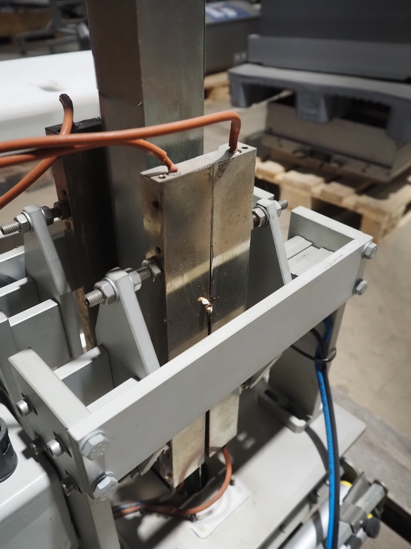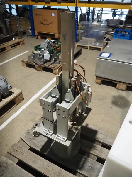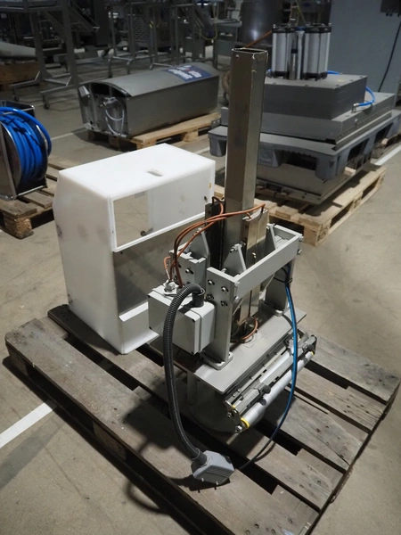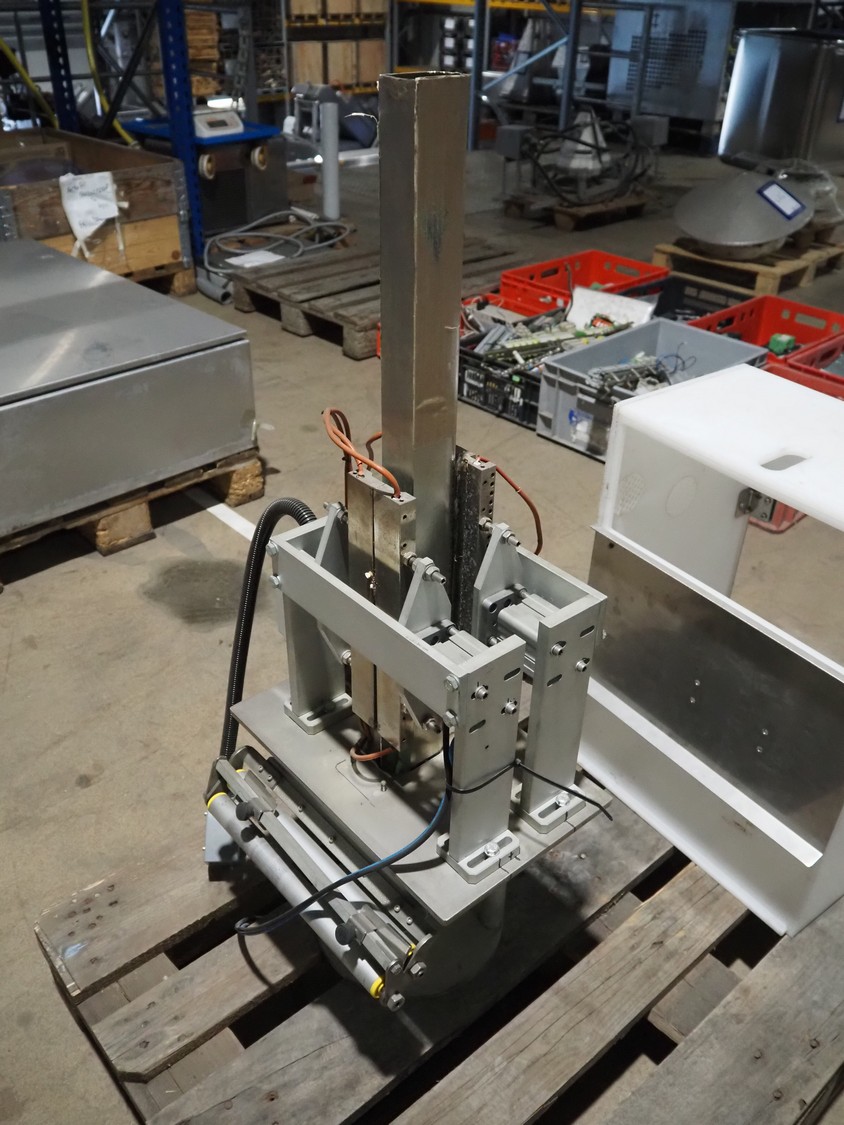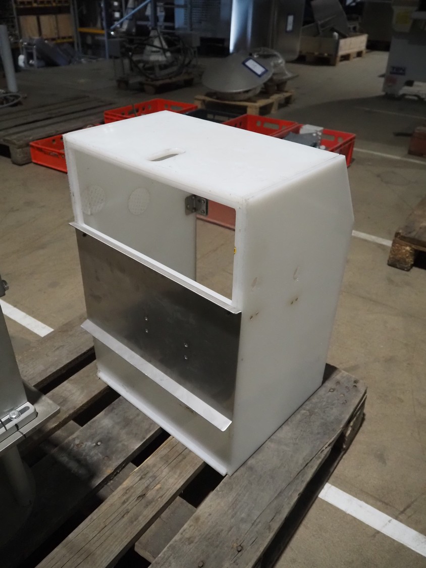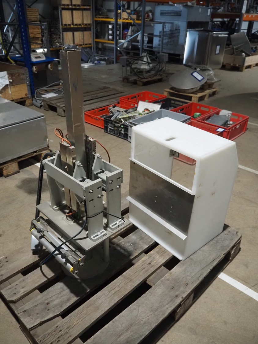Pallet with plastic rejector bin and part for bag form-, fill- and seal machine.