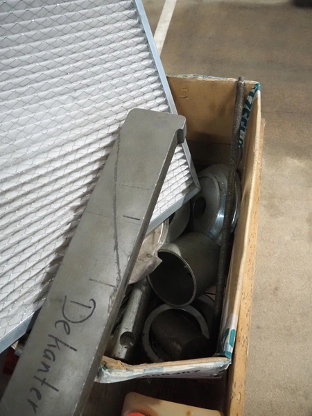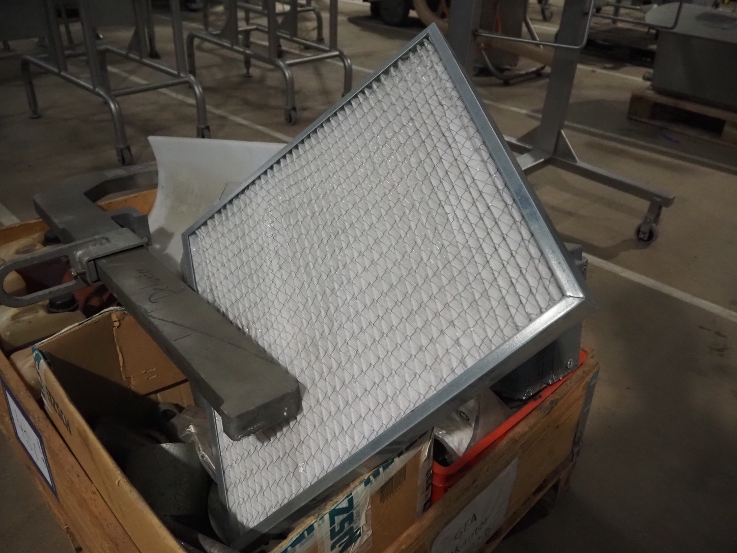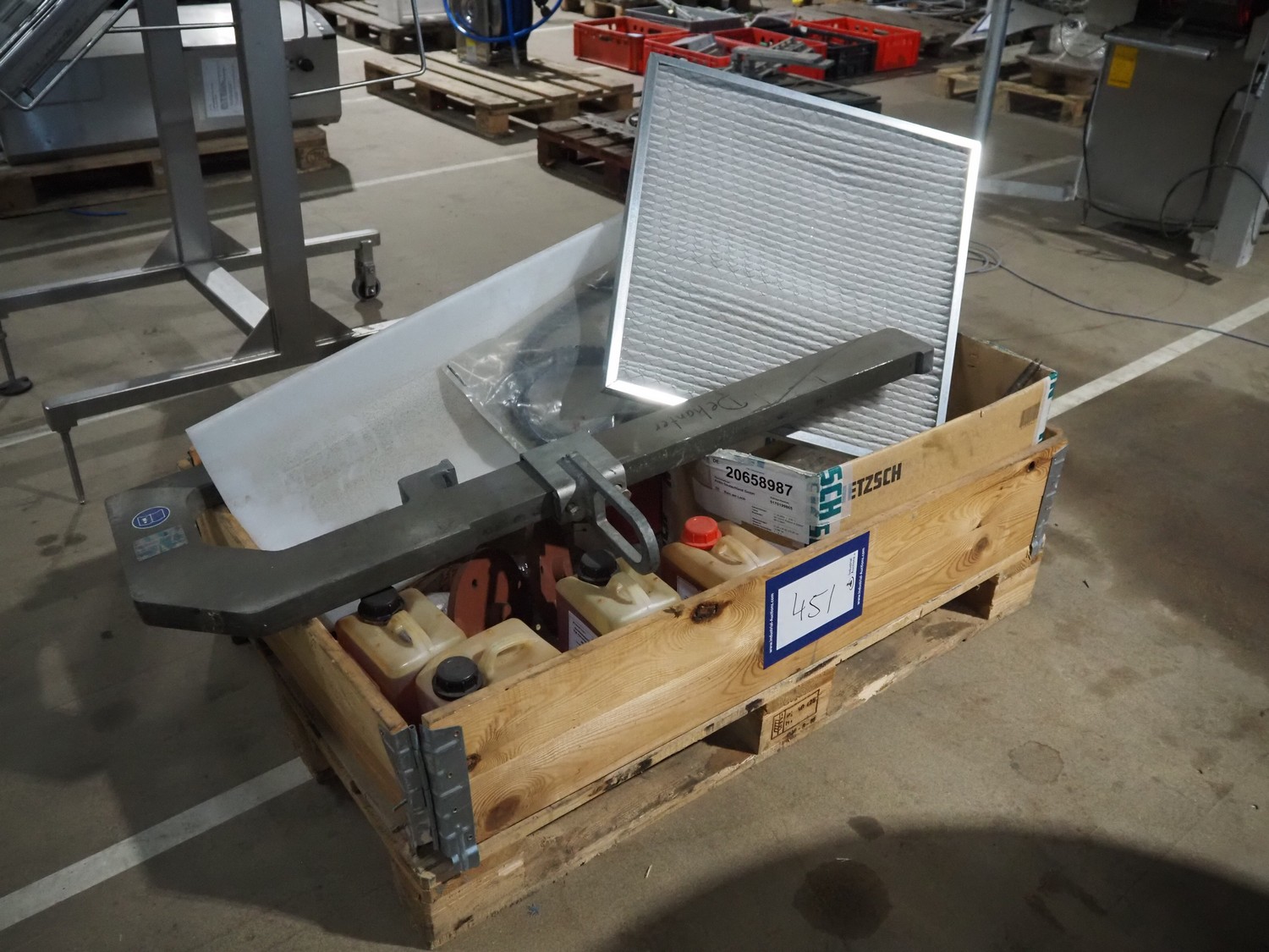 Pallet with machine parts, dimensions: 1200 mm x 800 mm x 550 mm.
