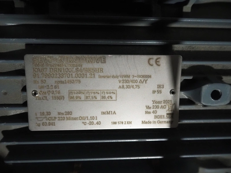 SEW electro motor, type: KA67 DRN100LS4/BE5HR, dimensions: 680 mm x 250 mm x 230 mm.
