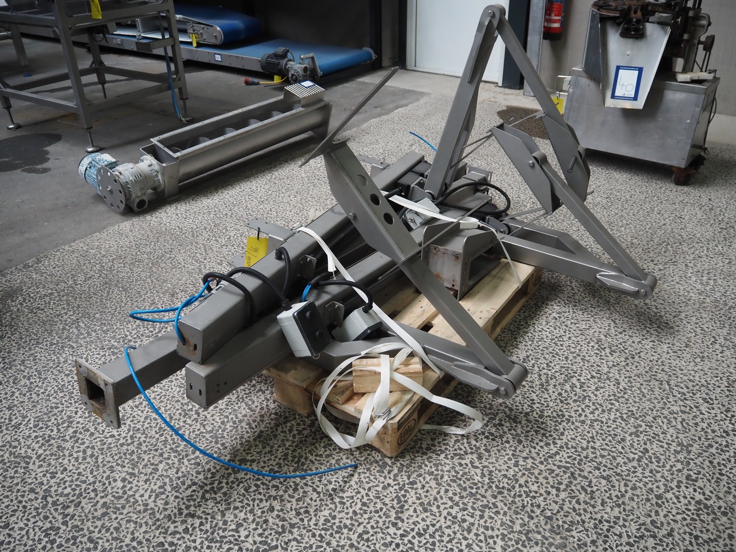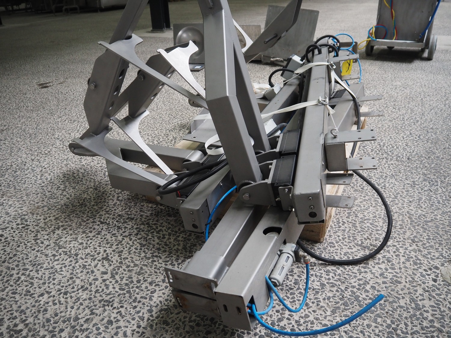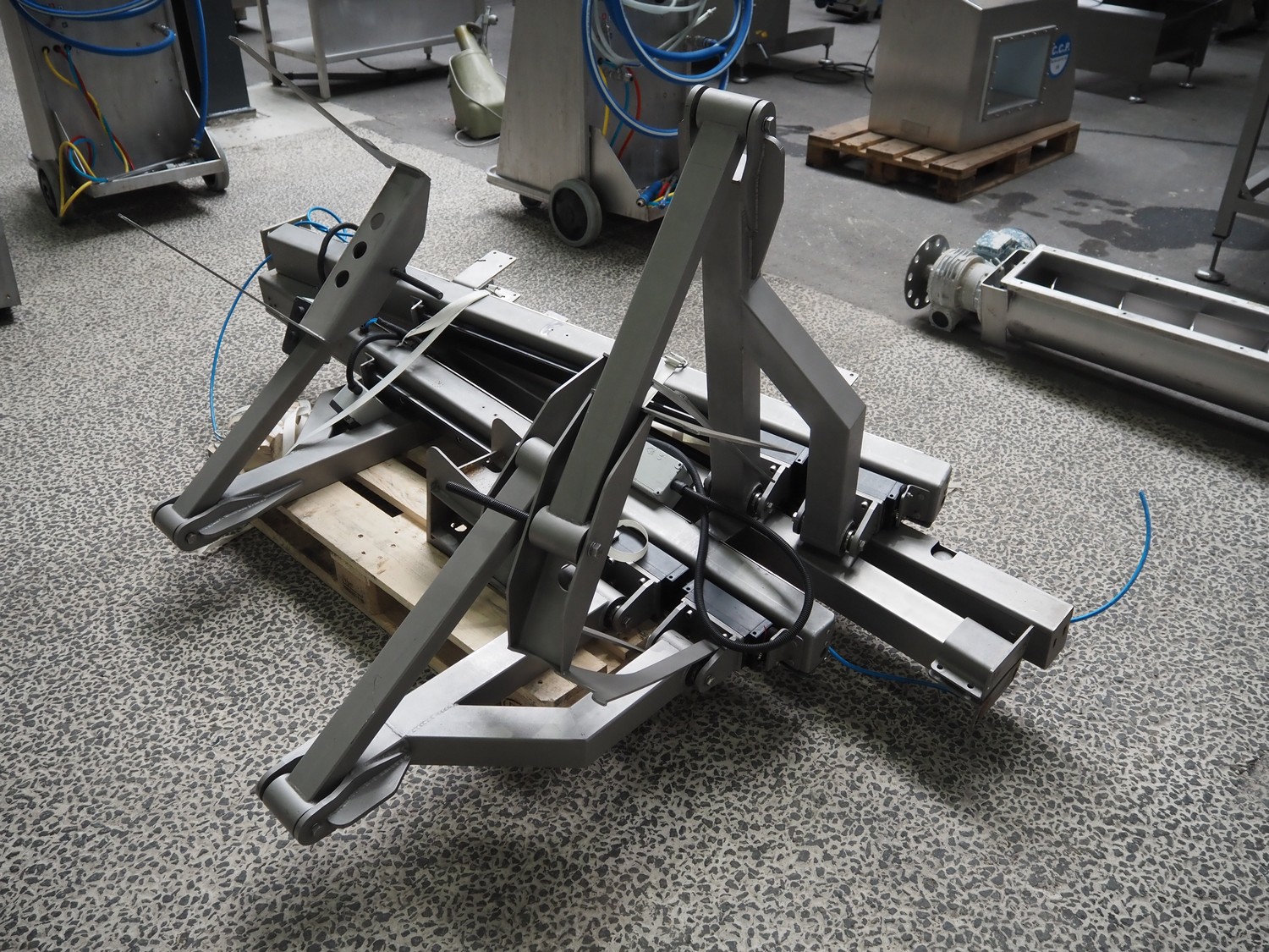 3 s/s loading arms on pallet, total dimensions: 2300 mm x 1380 mm x 1100 mm.
