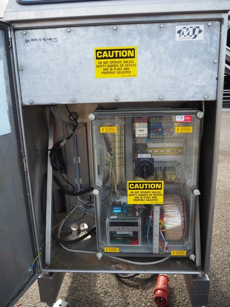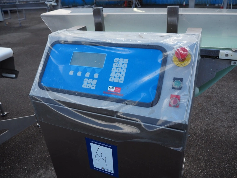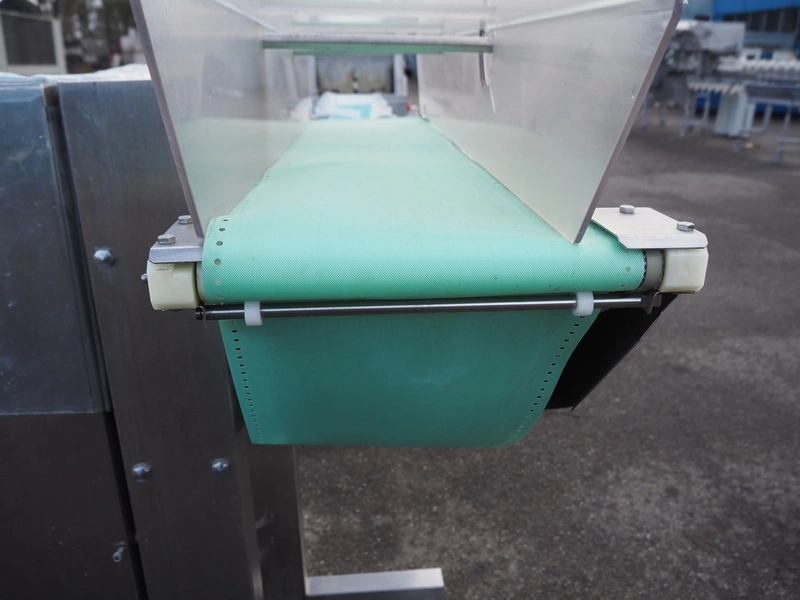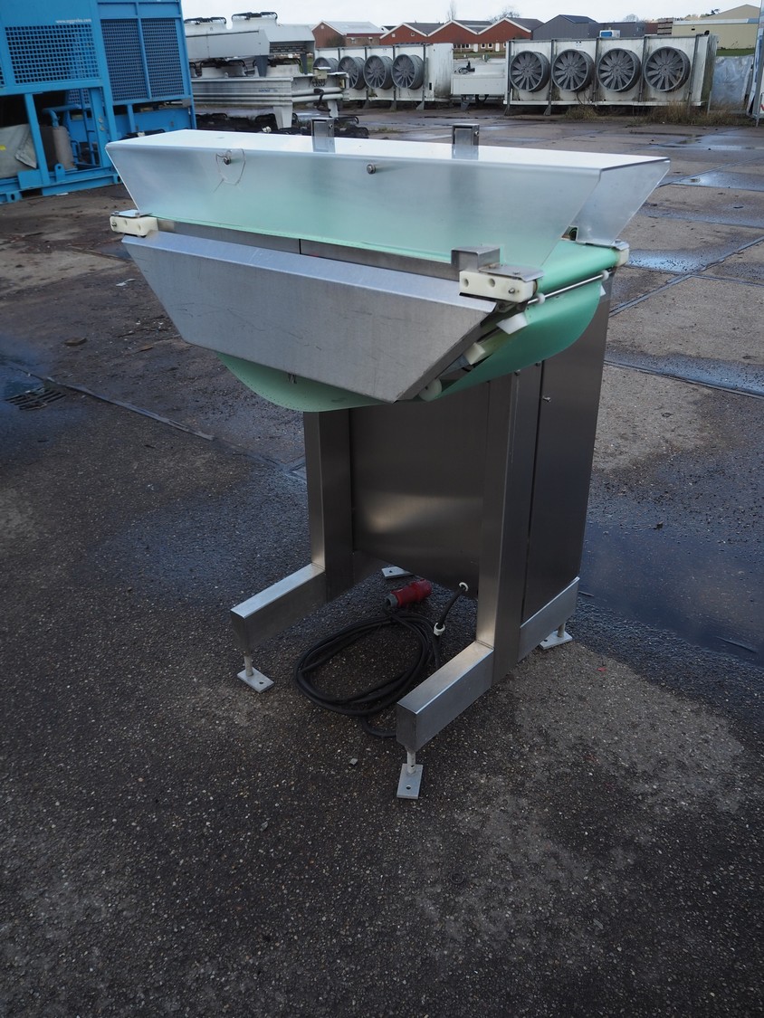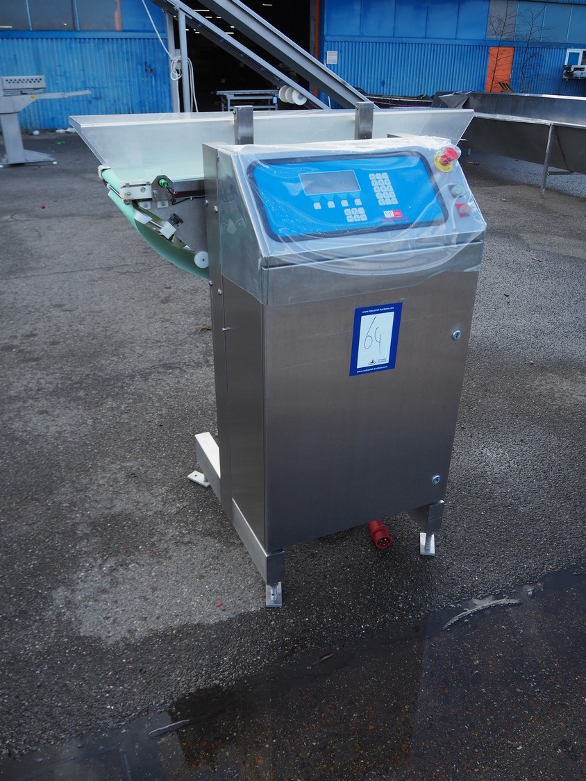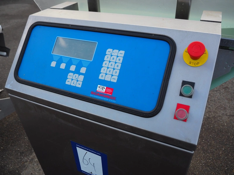 Scanvaegt part of grading line, model: Scangrader 7100, plastic belt, belt width: 275 mm, total dimensions: 1250 mm x 900 mm x 1400 mm.