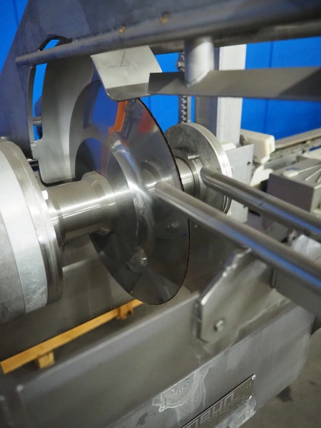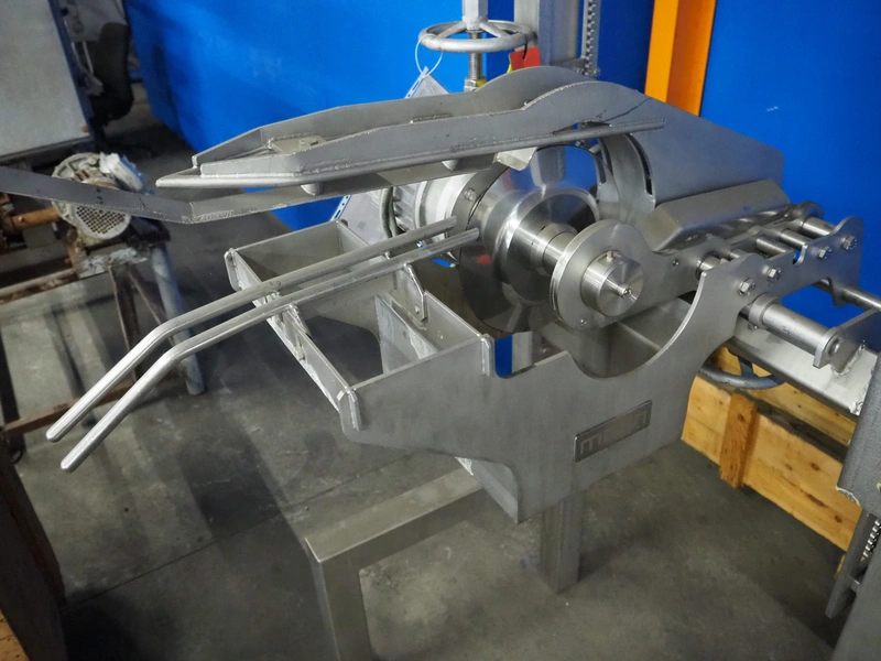 Meyn double blade saddle cutter, machine number: 2001090090, year of construction: 2001, dimensions: 1000 mm x 1000 mm x 2500 mm.