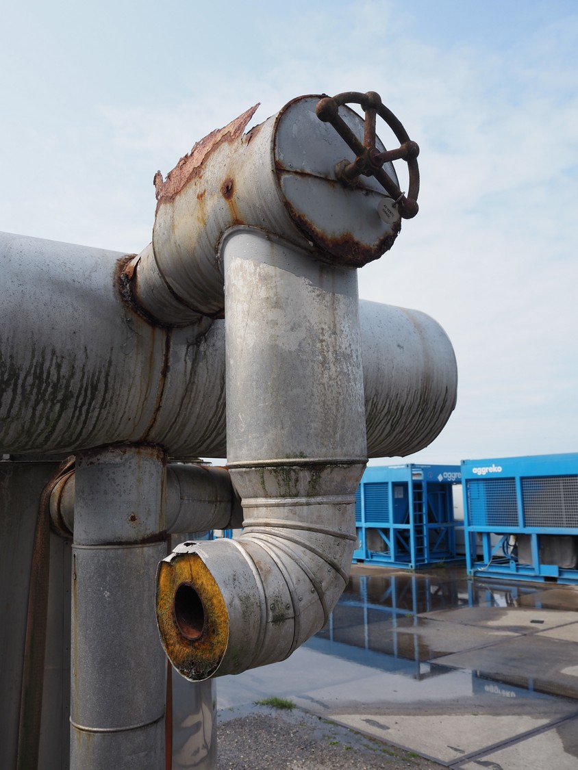 Flake ice scraper, tank dimensions: Ø 1700 mm x 1800 mm, total dimensions: 3300 mm x 2600 mm x 2500 mm.