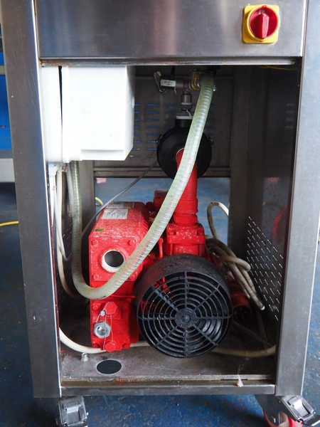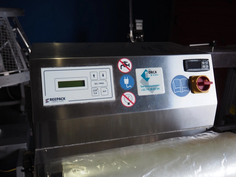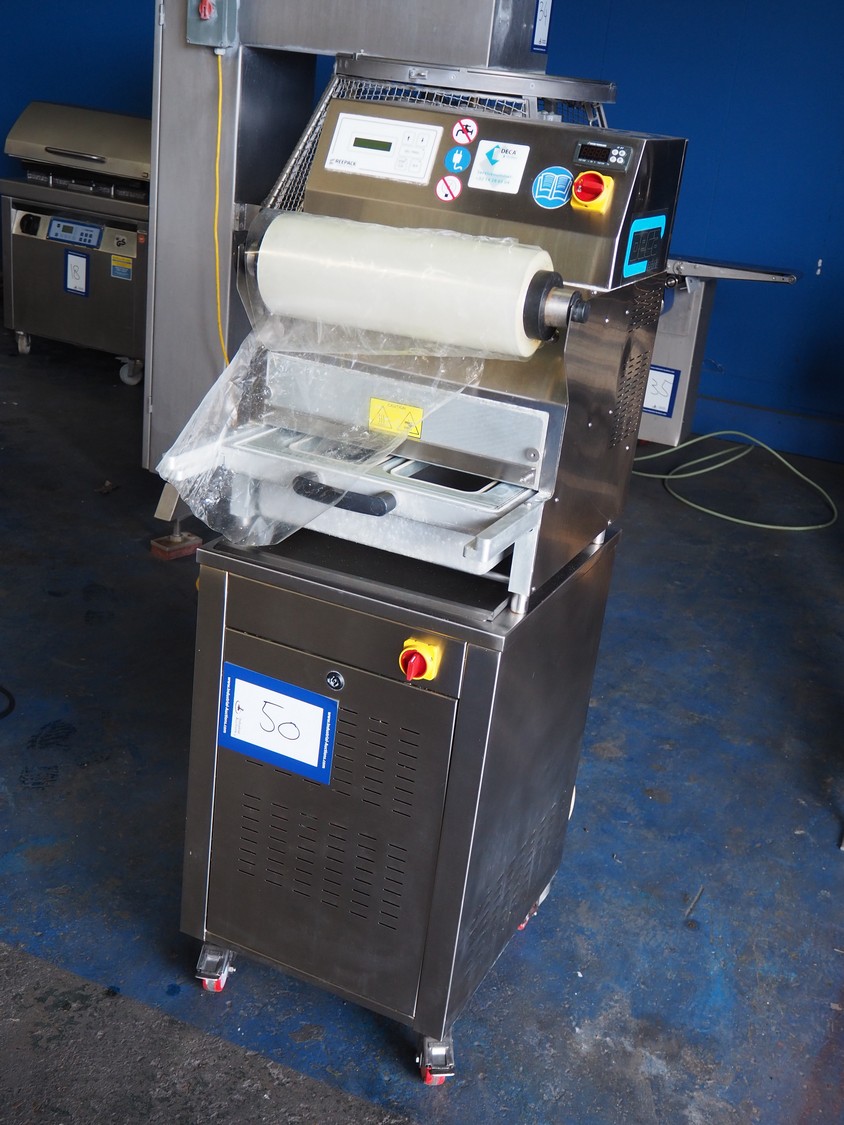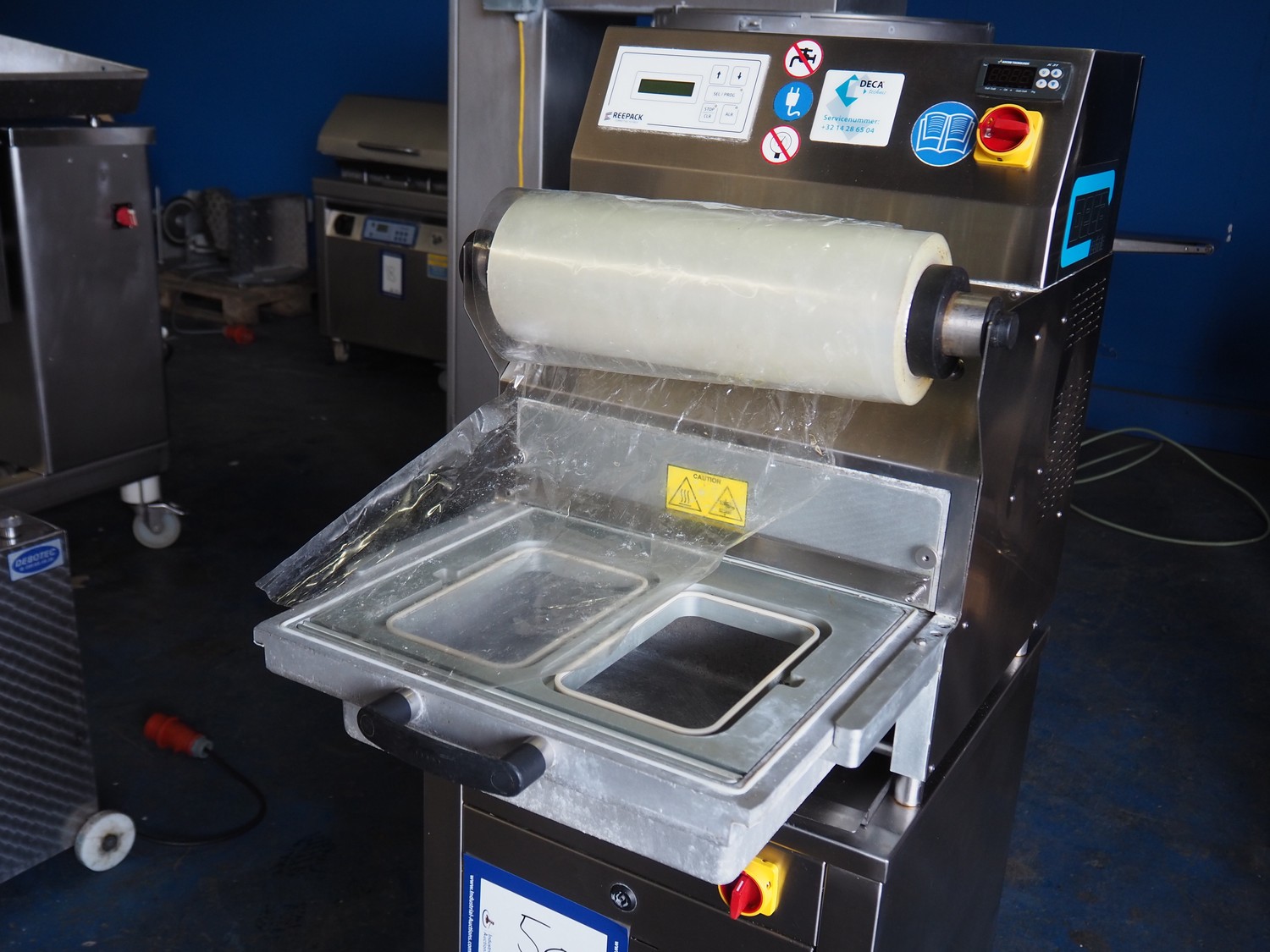 Reepack mobile traysealer, model: Reetray 20 VGM, serial number: 8817034, year of construction: 2017, 230 V, 1 Ph, 50 Hz, 16 A, tray dimensions: (2x) 220 mm x 140 mm, total dimensions: 550 mm x 700 mm x 1440 mm.