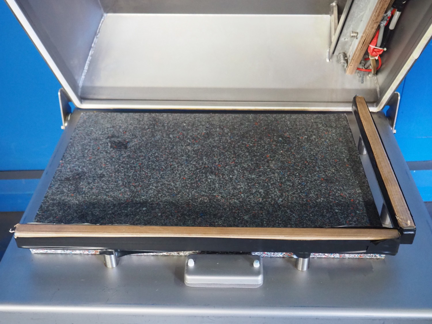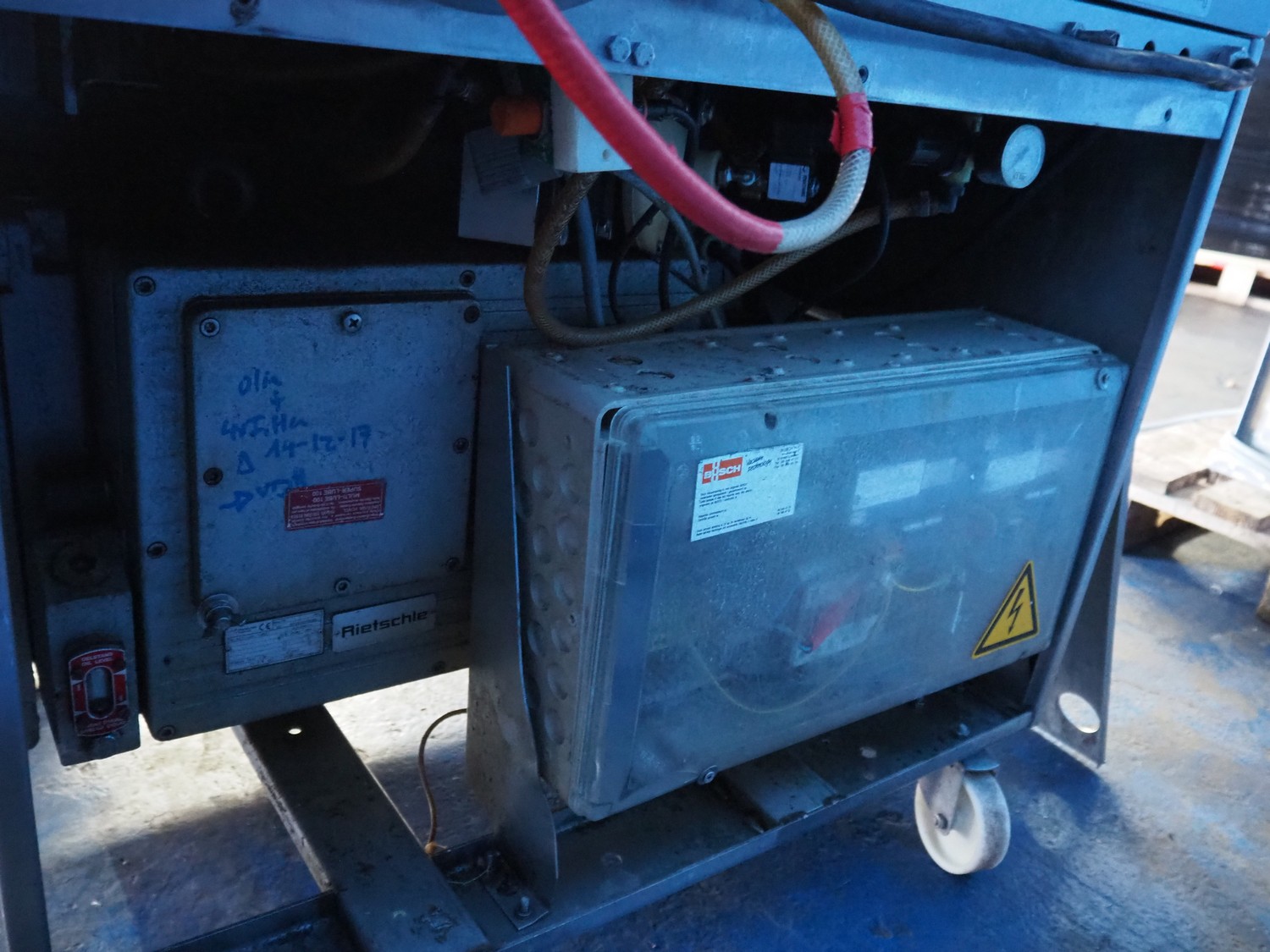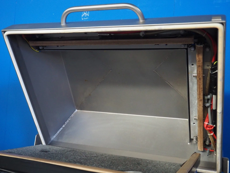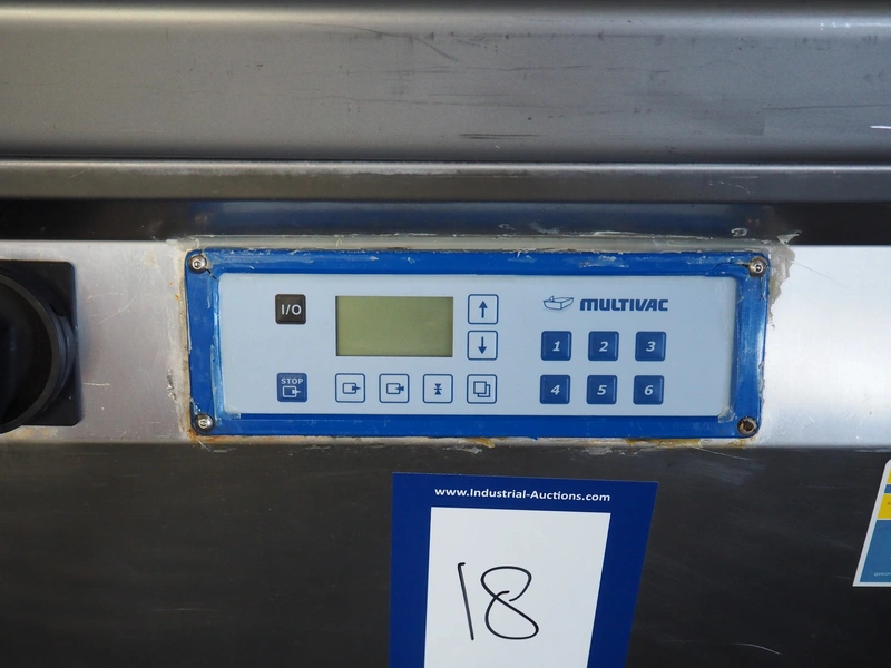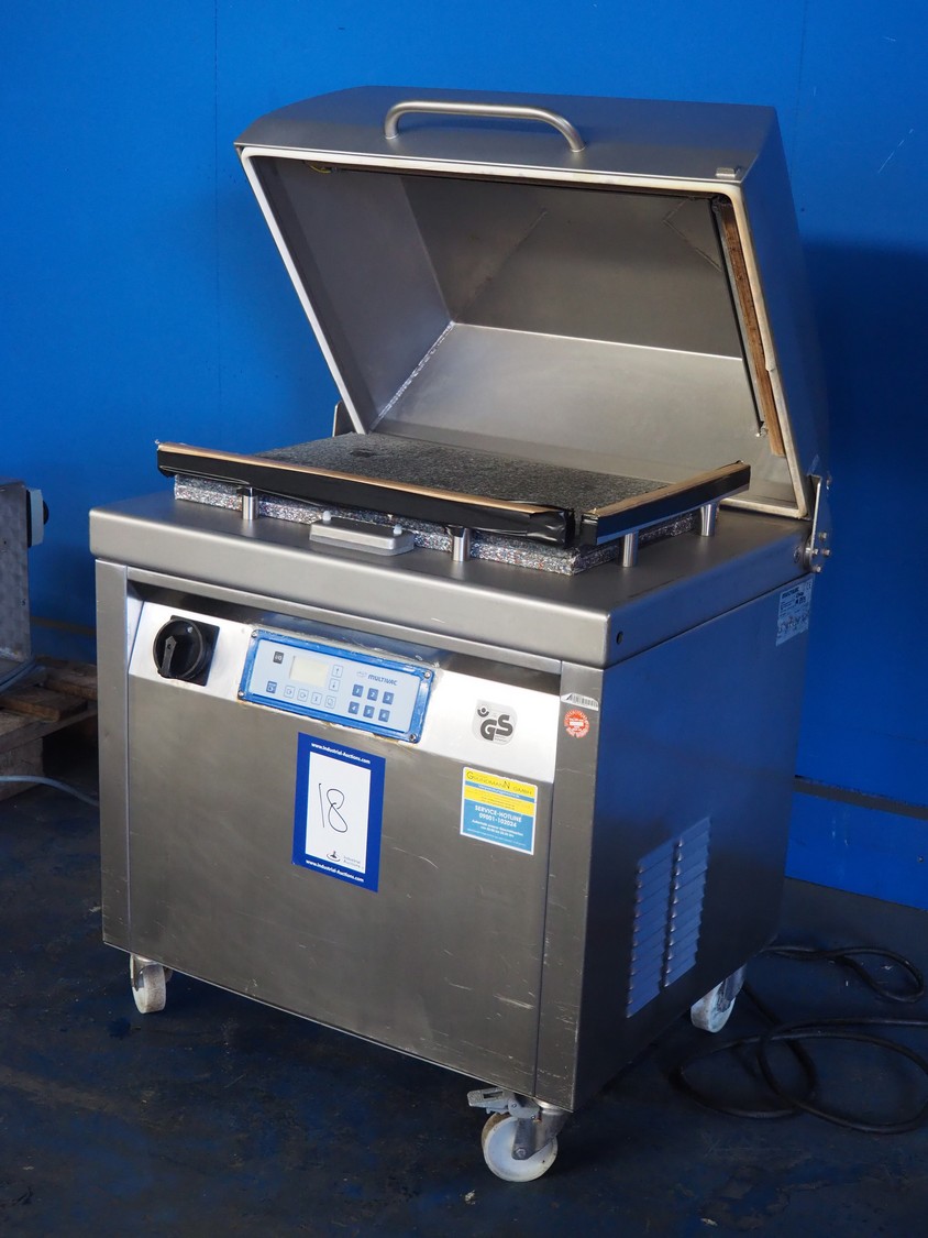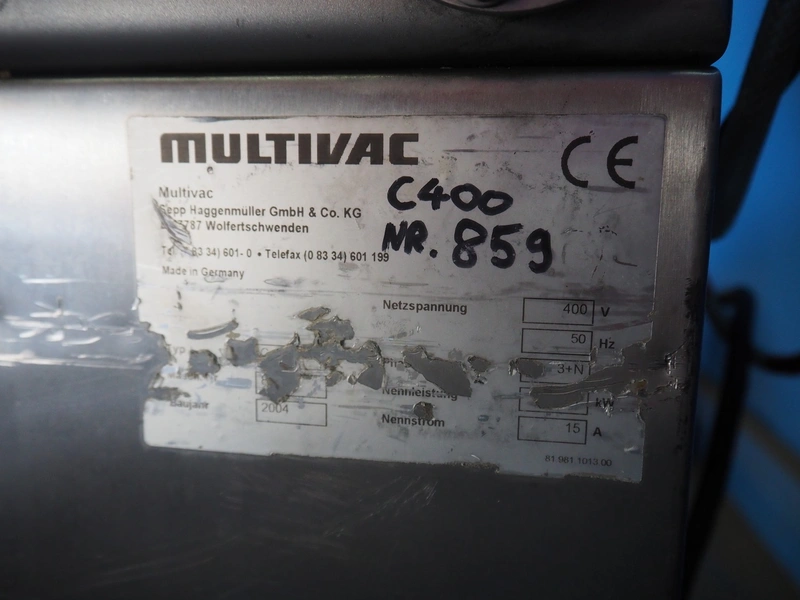 Multivac mobile vacuum machine, model: C400, number: 859, year of construction: 2004, 400 V, 3 Ph, 50 Hz, 15 A, chamber dimensions: 660 mm x 450 mm, seal length: 660 mm and 460 mm, total dimensions: 900 mm x 700 mm x 1100 mm.