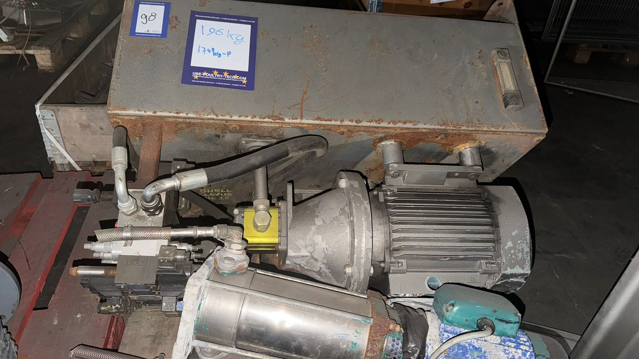 Pallet with hydraulic unit, 1200 mm x 800 mm x 500 mm.