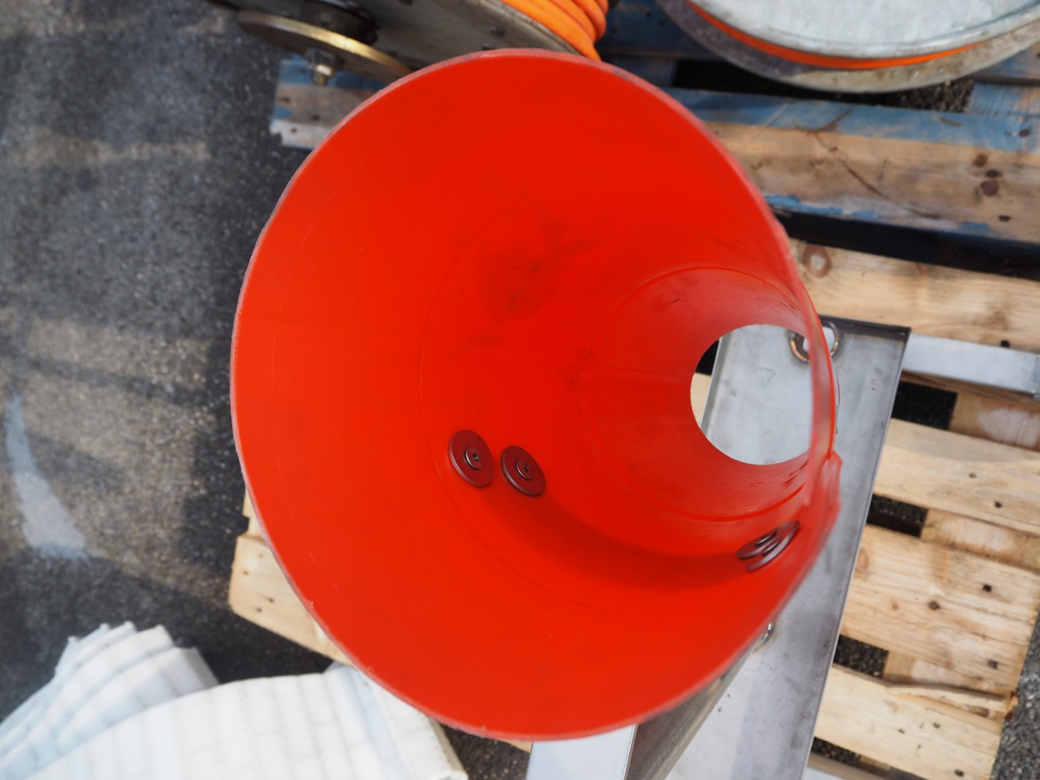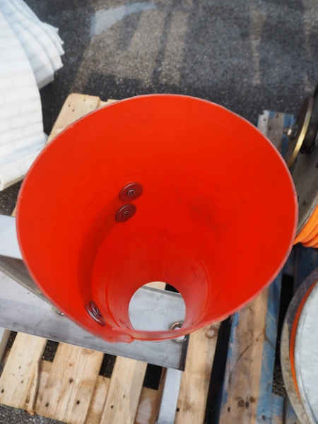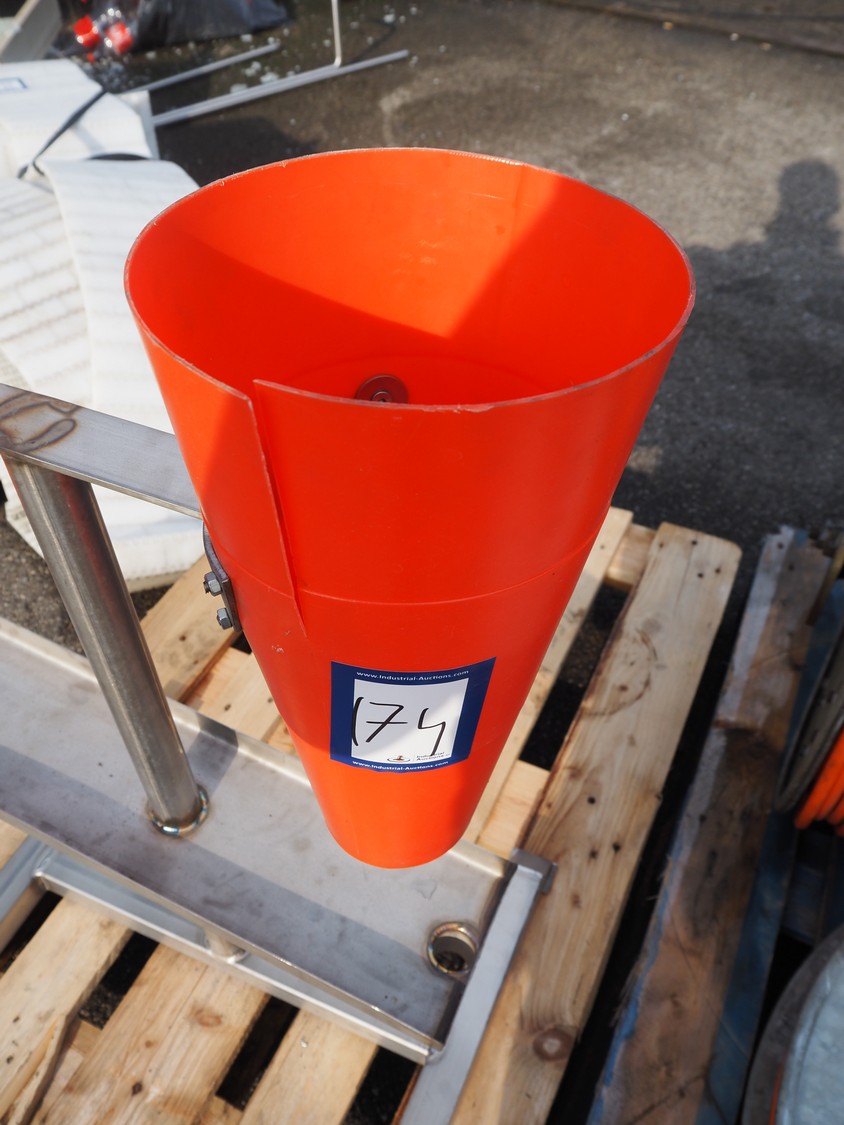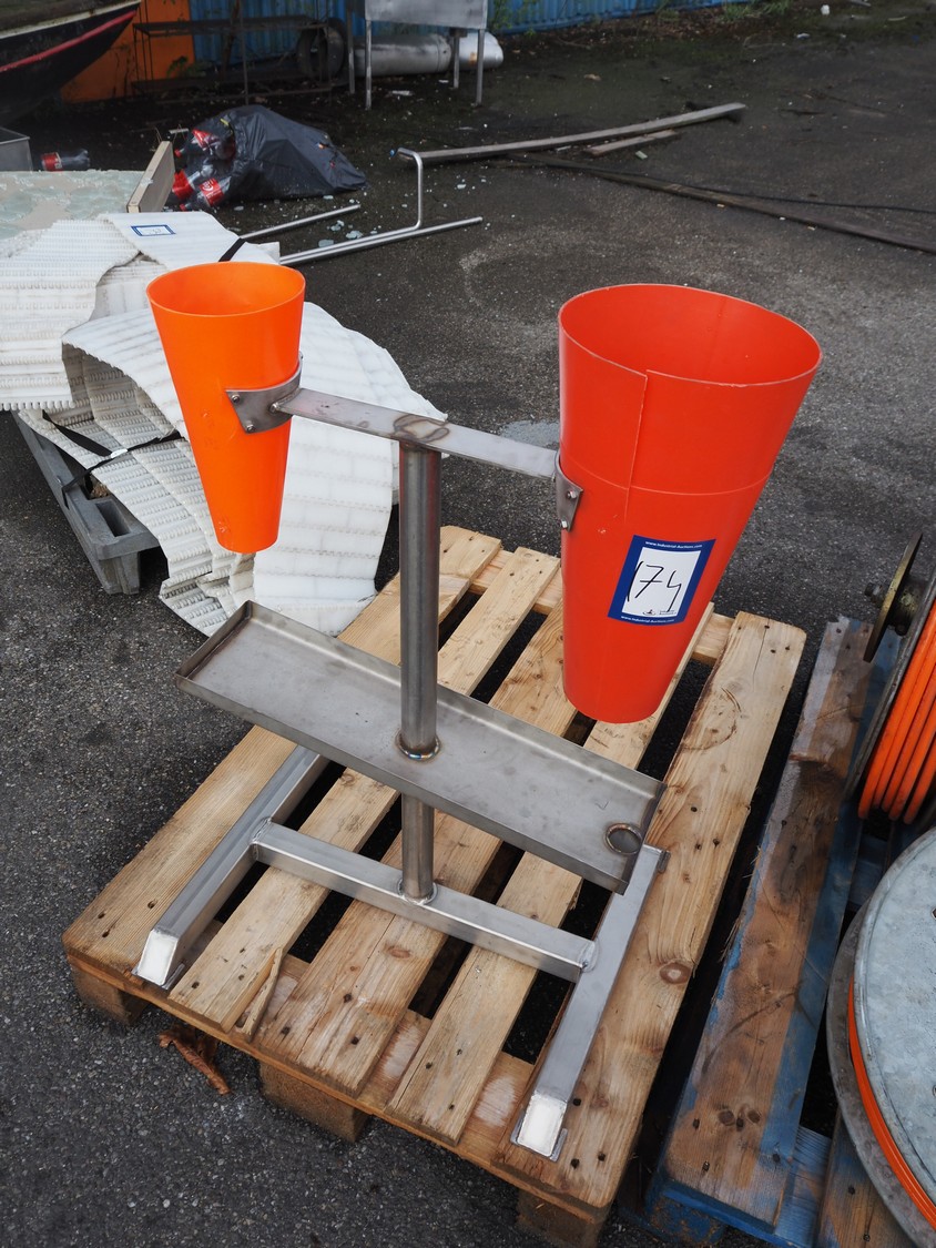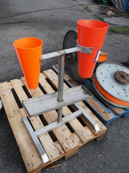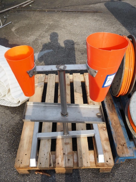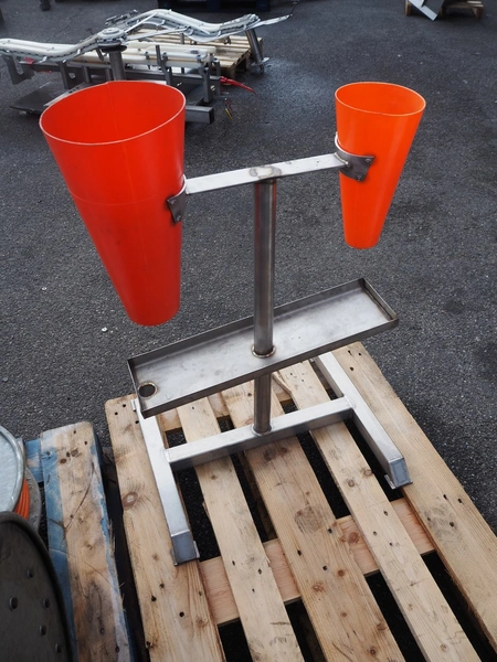 S/s frame with 2 plastic bleeding cones, cone dimensions: (1x) Ø 210 mm x 400 mm, (1x) Ø 150 mm x 300 mm, total dimensions: 600 mm x 500 mm x 900 mm.