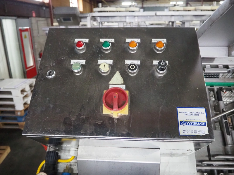 Systemate thigh deboner, model: D 90, 28 stations, dimensions: 2700 mm x 1000 mm x 2270 mm. Overhauled. Without control panel.
