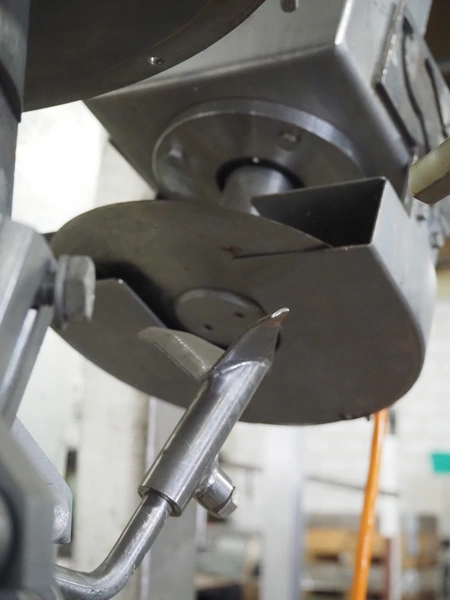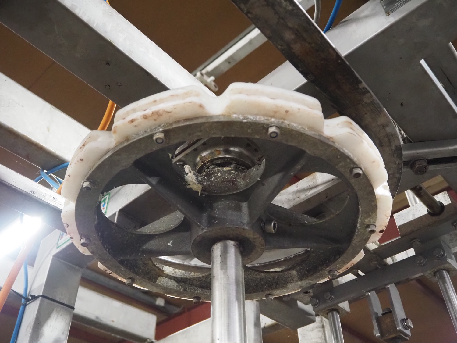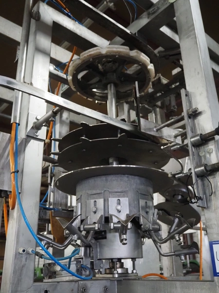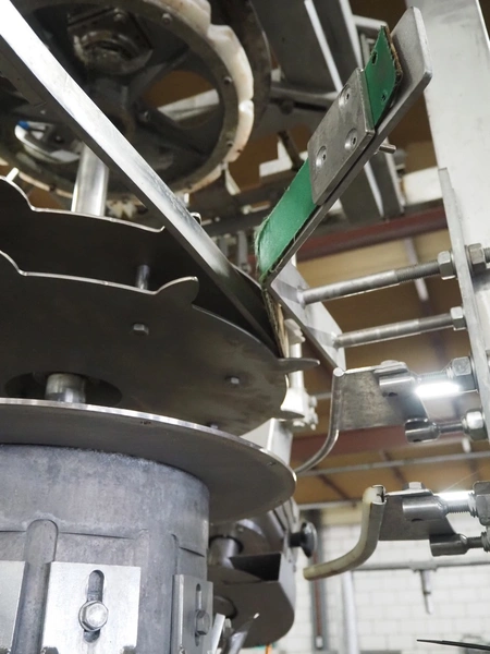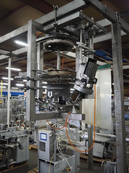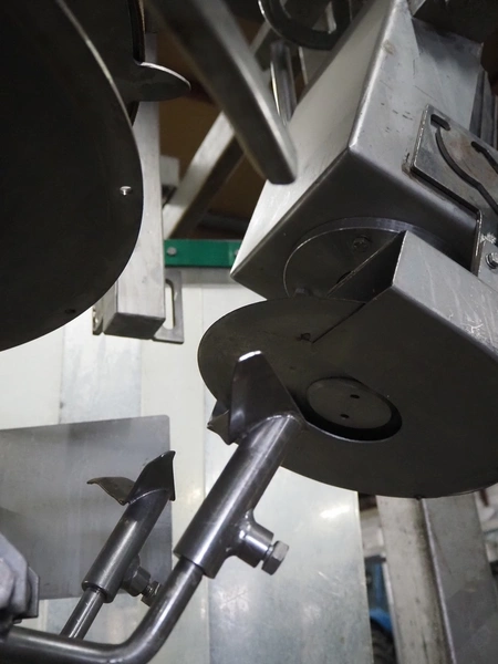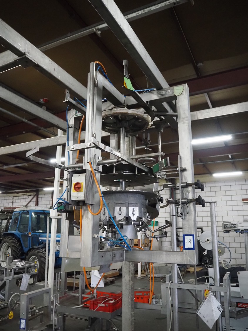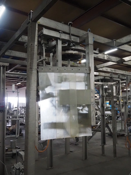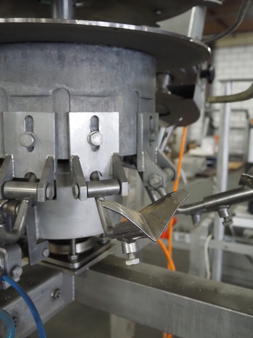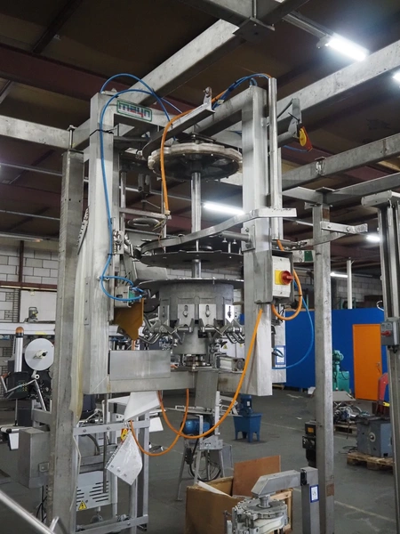 Meyn drum thigh cutter, 10 stations, dimensions: 1200 mm x 1200 mm x 1400 mm. Without overhead steal.