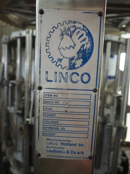 Linco automatic eviscerator, machine number: 211.662, year of construction: 1986, 24 stations, dimensions: 2000 mm x 1600 mm x 2250 mm. Incomplete.