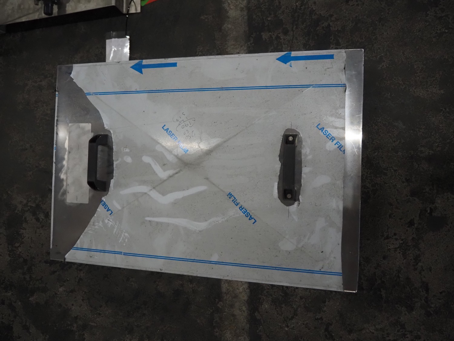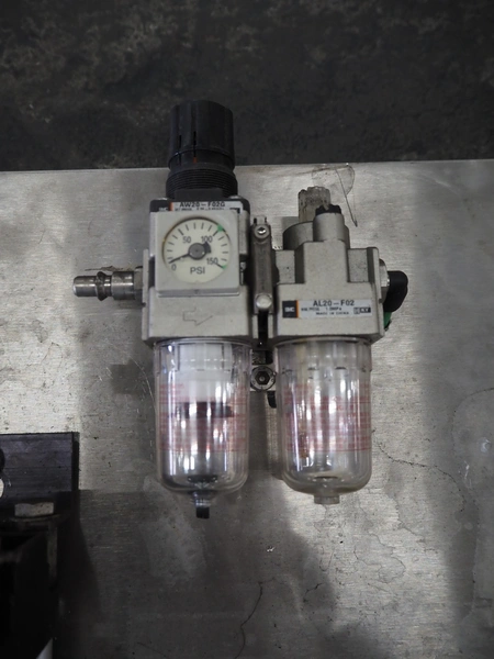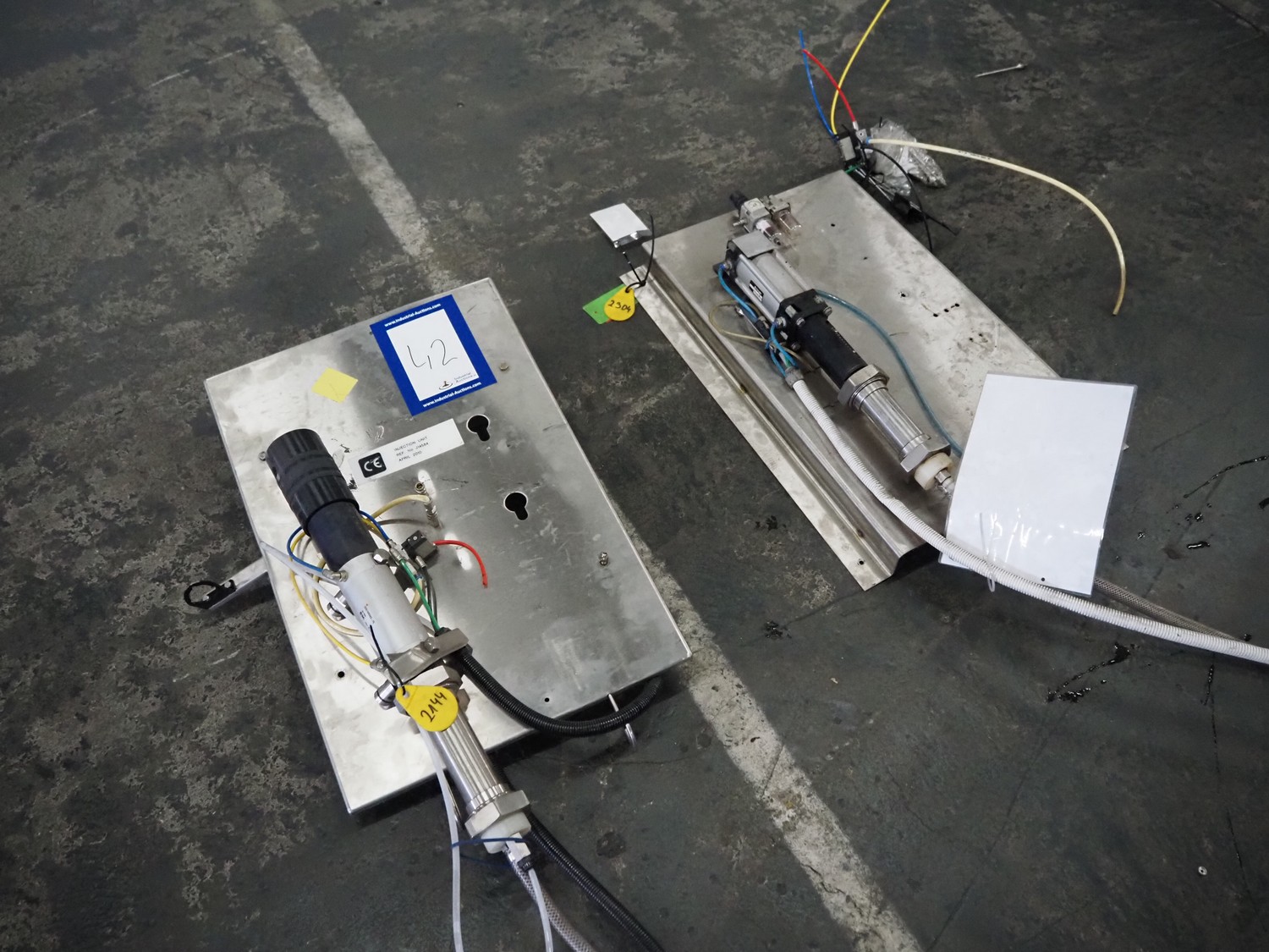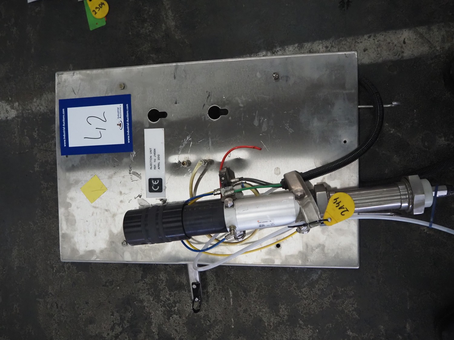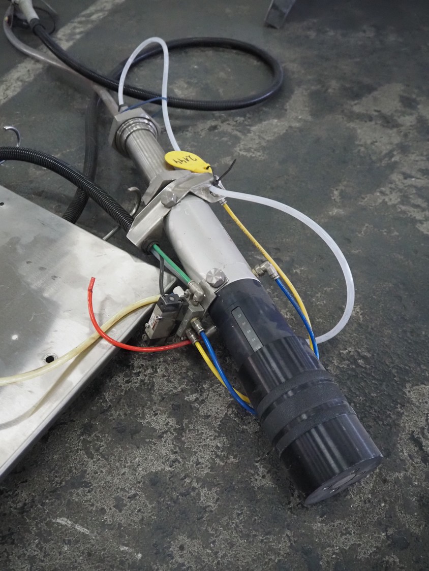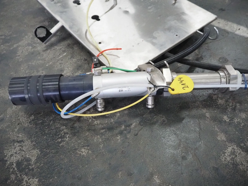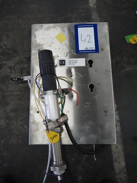 Manual injector with s/s frame, dimensions: (2x) 600 mm x 150 mm x 800 mm.