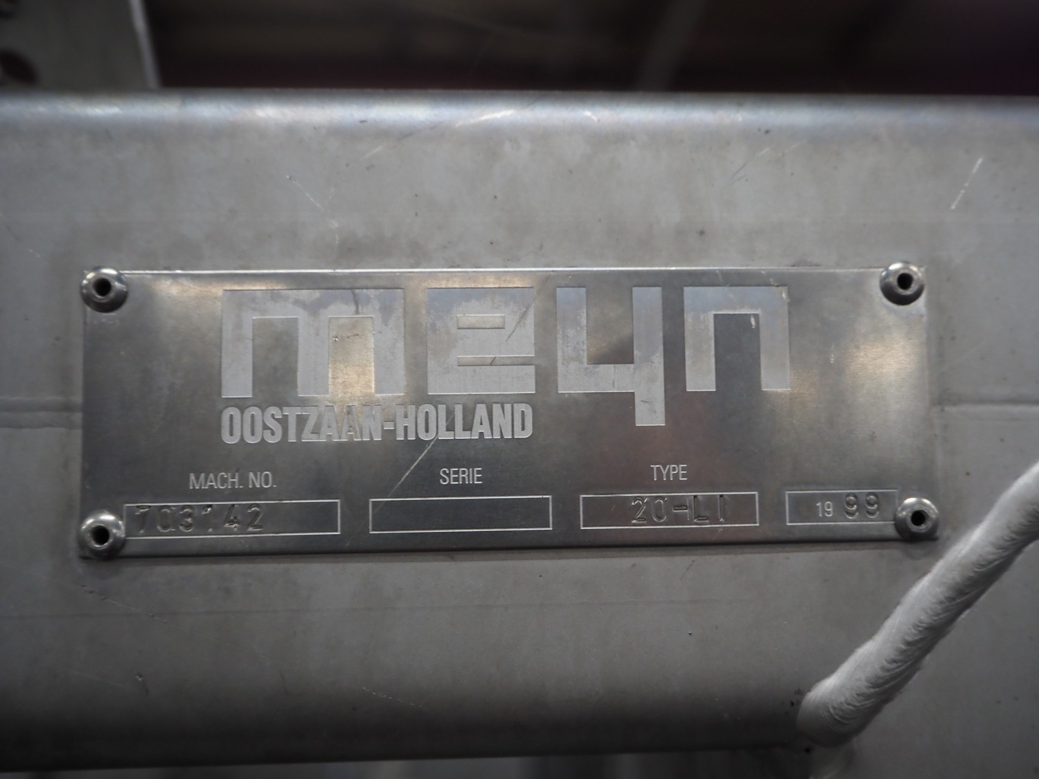 Meyn neck skin slitter, type: 20LI, machine number: 703142, year of construction: 1999, 20 stations, dimensions: 1500 mm x 1700 mm x 2170 mm.
