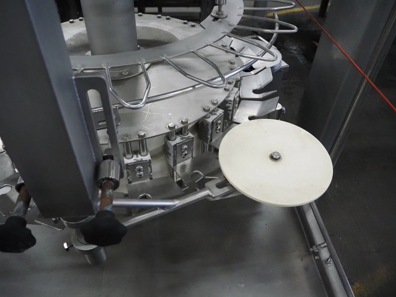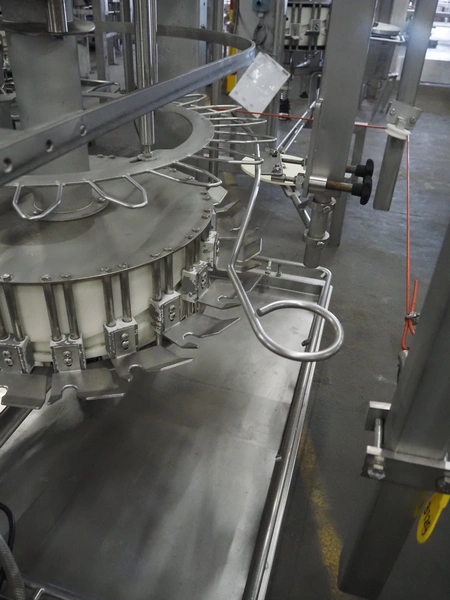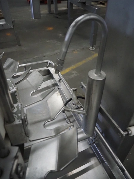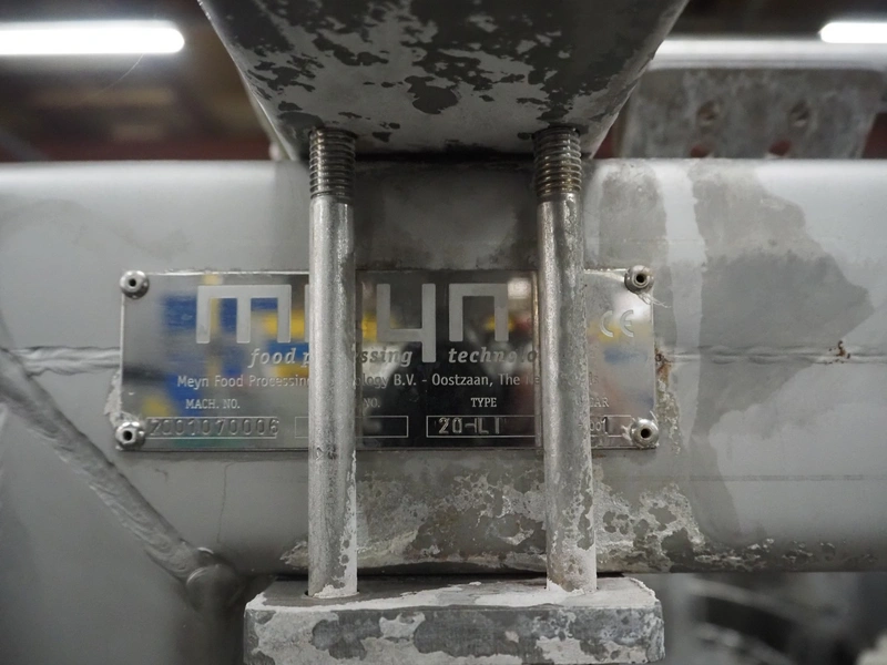 Meyn neck skin trimmer, type: 20-LI, machine number: 2001070006, year of construction: 2001, 20 stations, dimensions: 1900 mm x 1750 mm x 2300 mm.