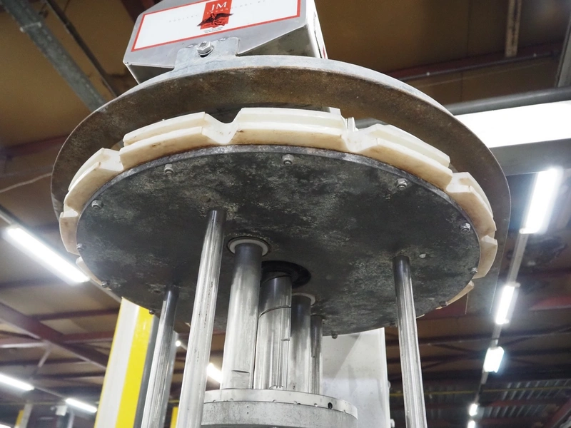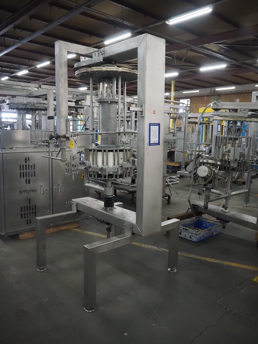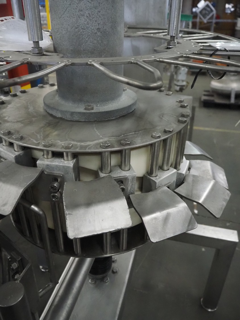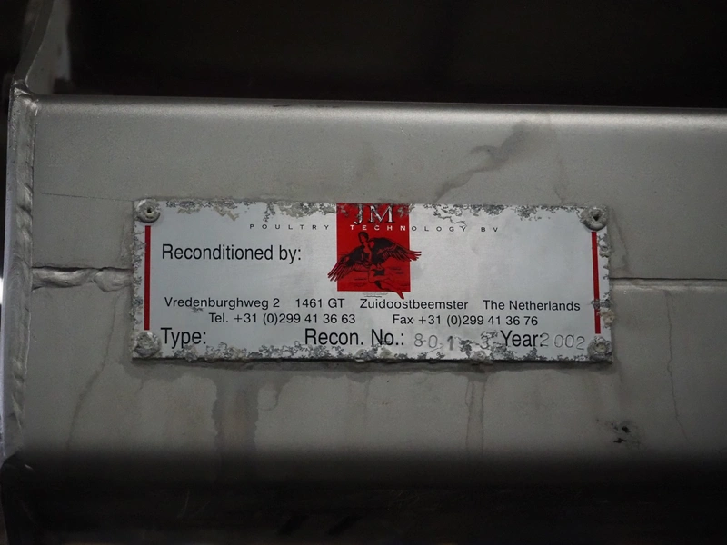 Meyn neck skin trimmer, 14 stations, dimensions: 1260 mm x 1200 mm x 2400 mm. Overhauled in 2002.
