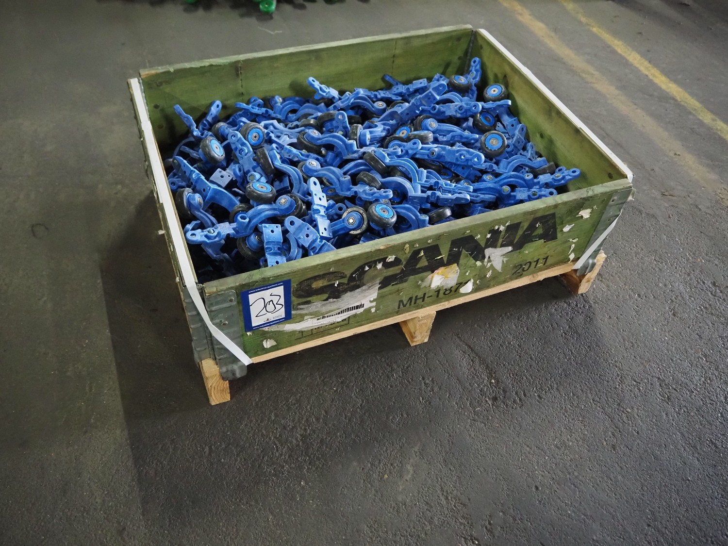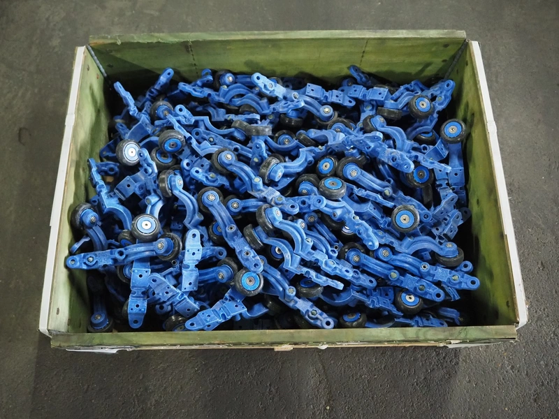 Pallet box with Foodmate trolleys for tube track, dimensions: 1300 mm x 1200 mm x 900 mm.