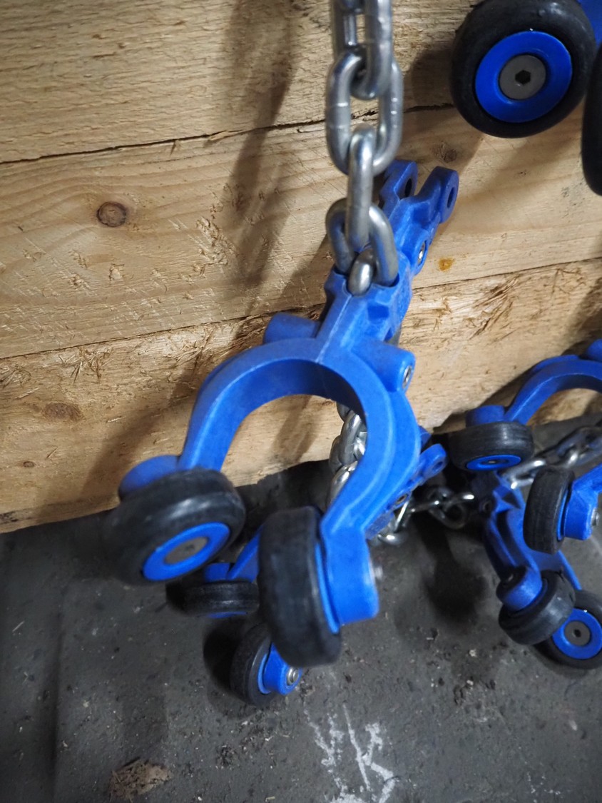 Crate with Foodmate trolleys on chain, dimensions: 1200 mm x 800 mm x 600 mm.