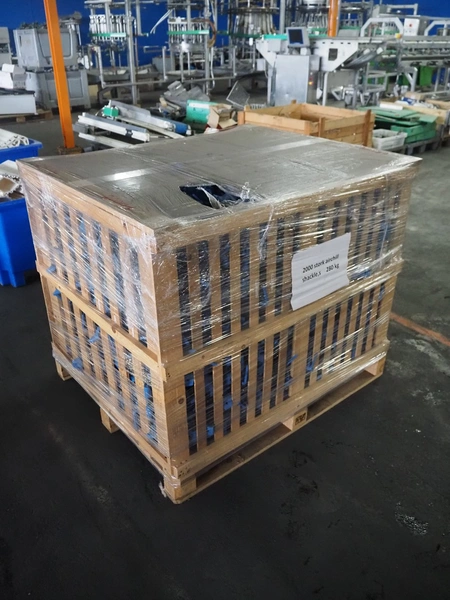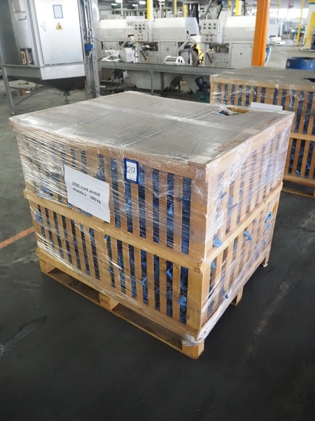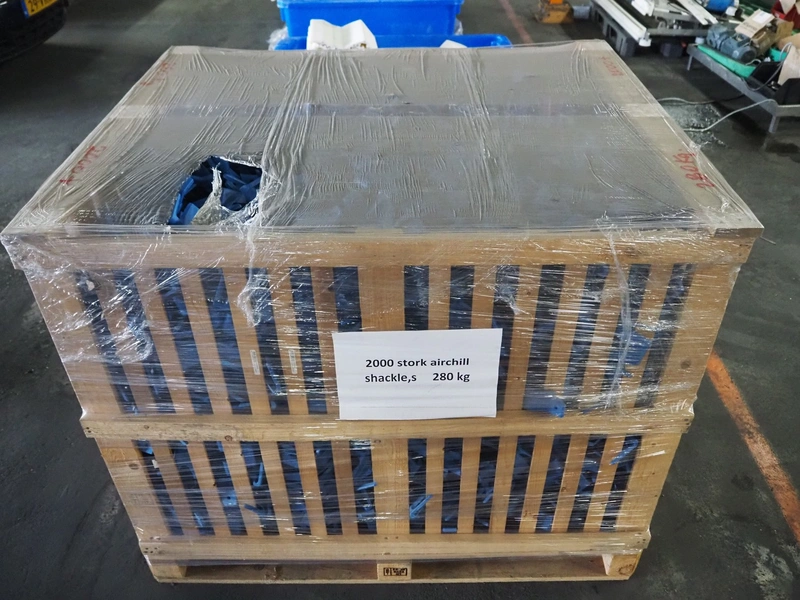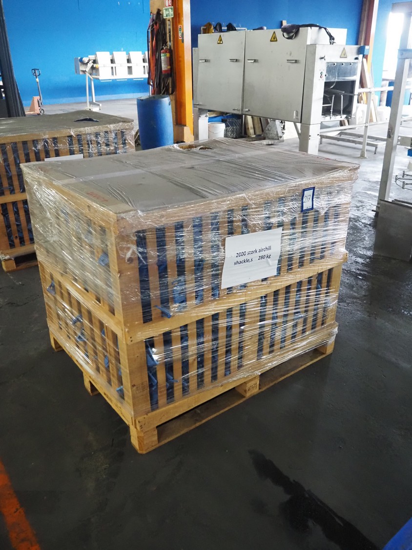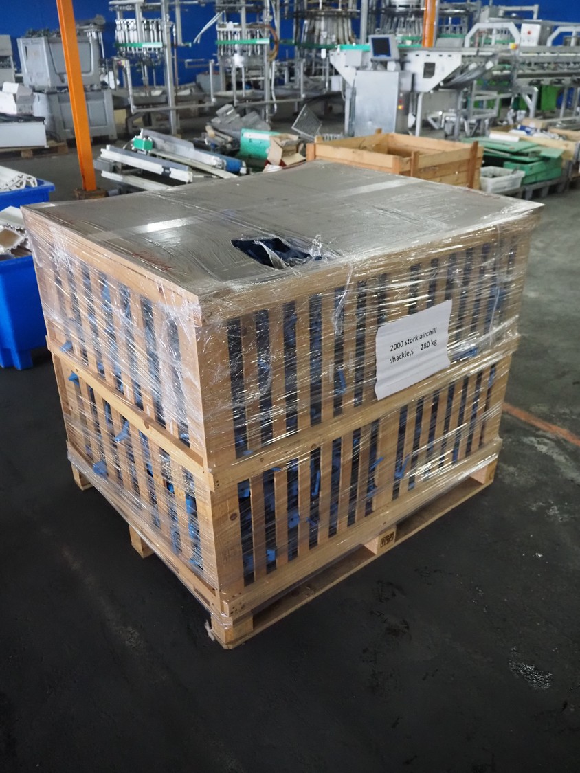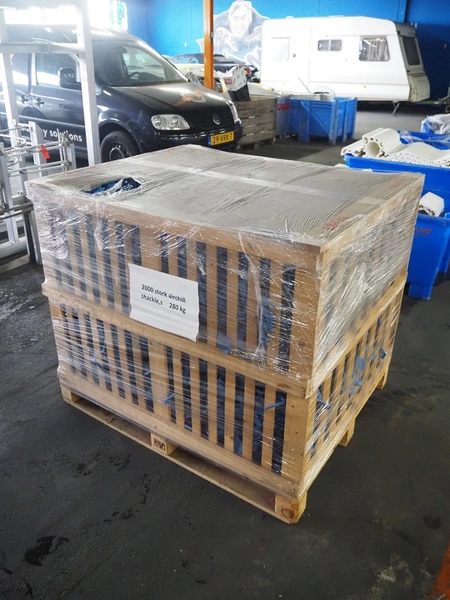 Crate with large amount of plastic Stork B.V. shackles, 1360 pieces, dimensions: 1200 mm x 1000 mm x 1000 mm.
