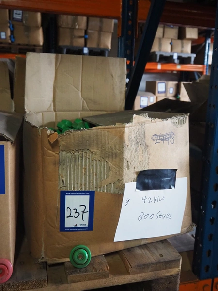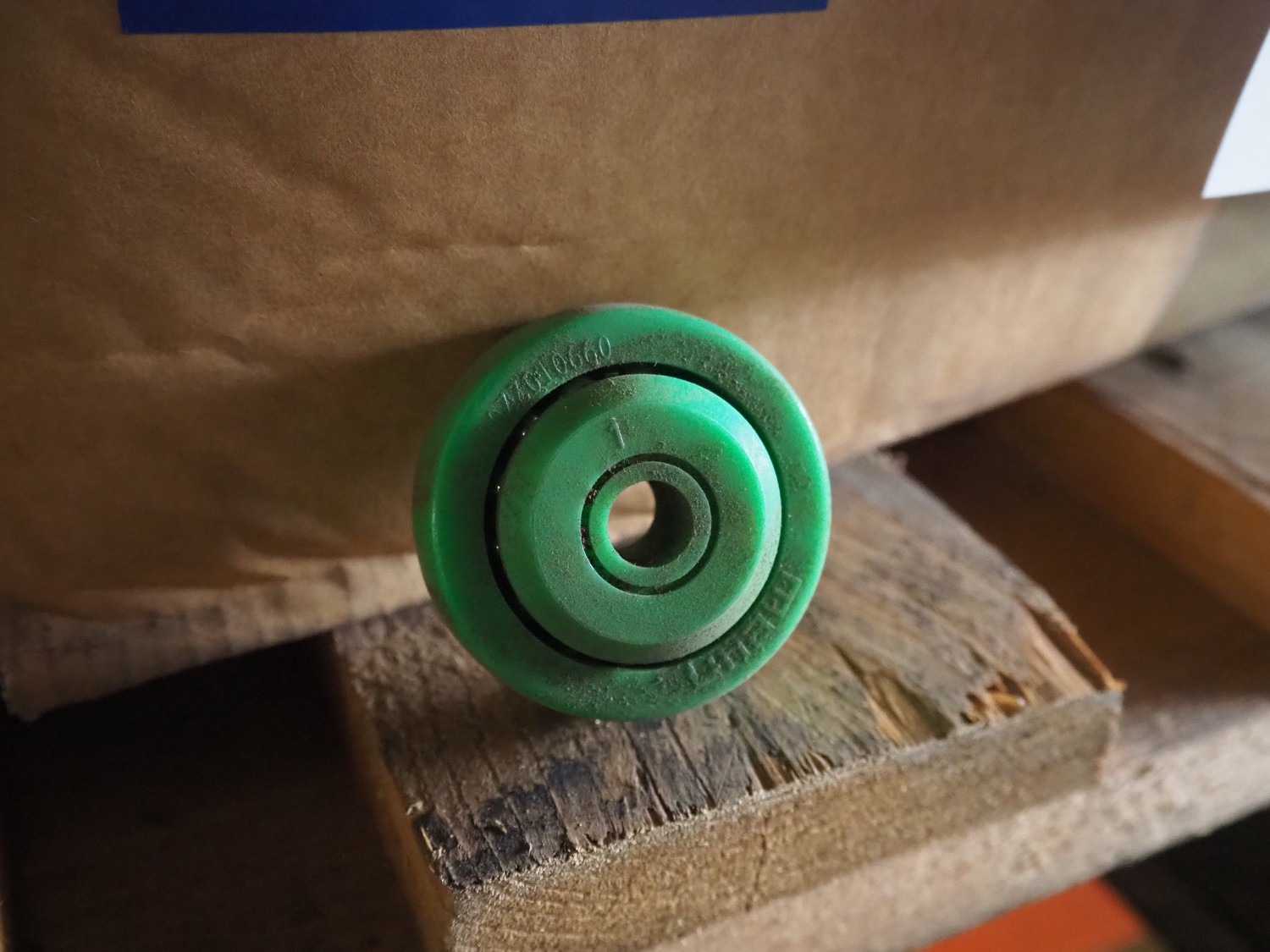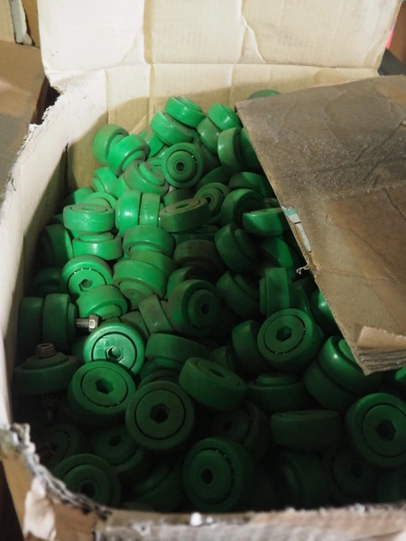 Box with approximately 800 pieces of plastic drive wheels for tube track, dimensions box: 600 mm x 400 mm x 290 mm.