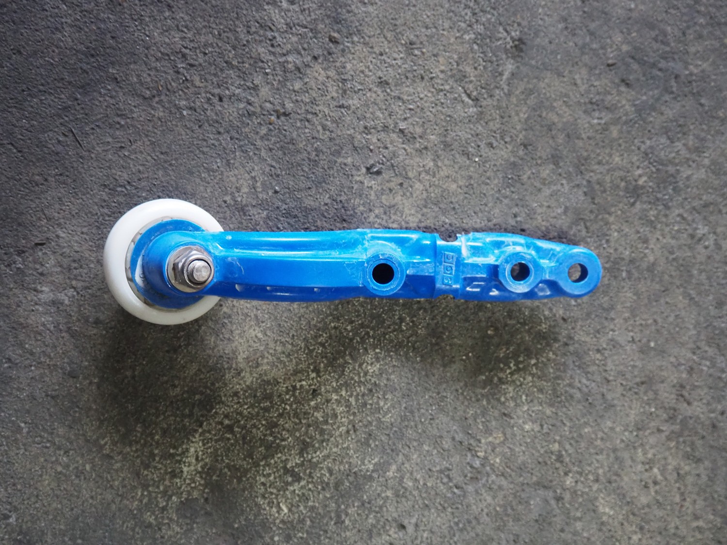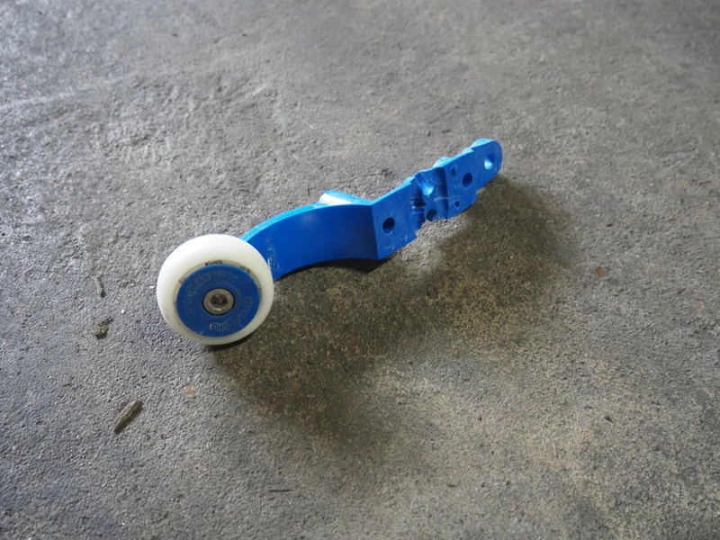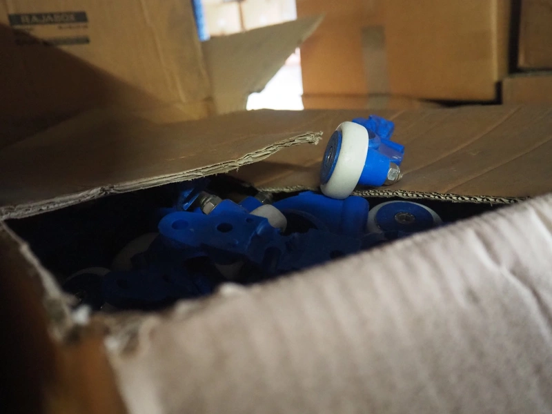 3 boxes with approximately 330 pieces of plastic trolleys for tube track, dimensions box: 600 mm x 400 mm x 290 mm.