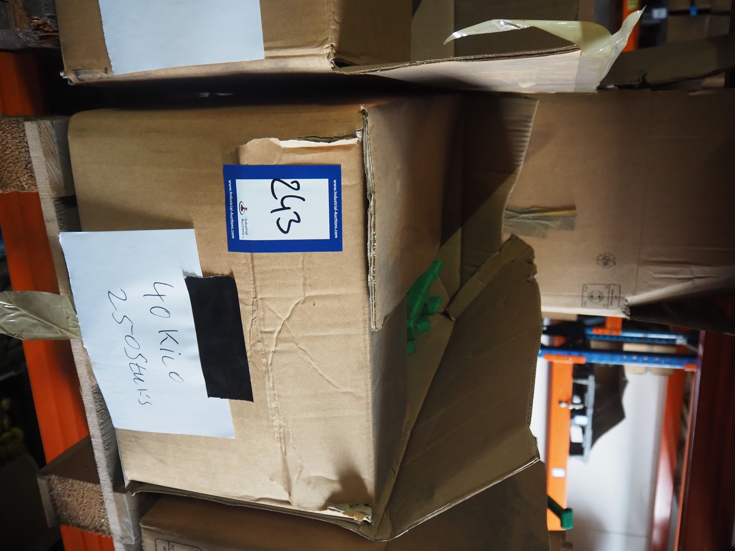 Box with approximately 250 pieces of plastic shackle parts, dimensions box: 600 mm x 400 mm x 290 mm.