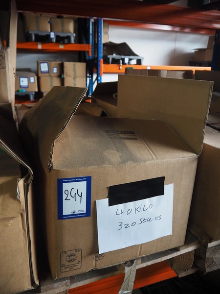 Box with approximately 320 pieces of plastic shackle parts, dimensions box: 600 mm x 400 mm x 290 mm.