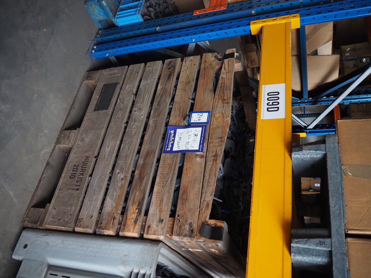 Wooden crate with approximately 3200 pieces of plastic Systemate shackles.