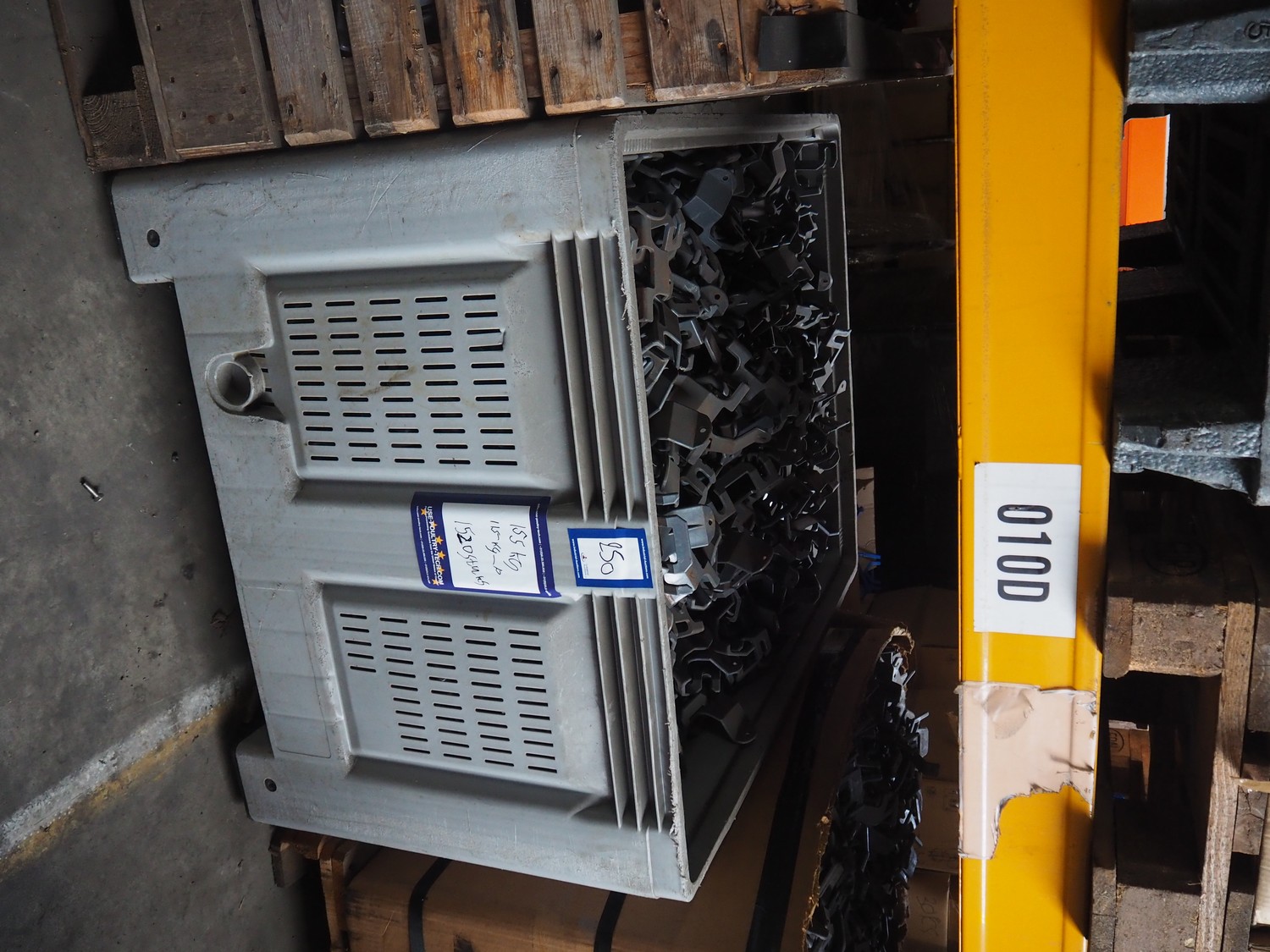 Plastic pallet box with approximately 1520 plastic shackles.