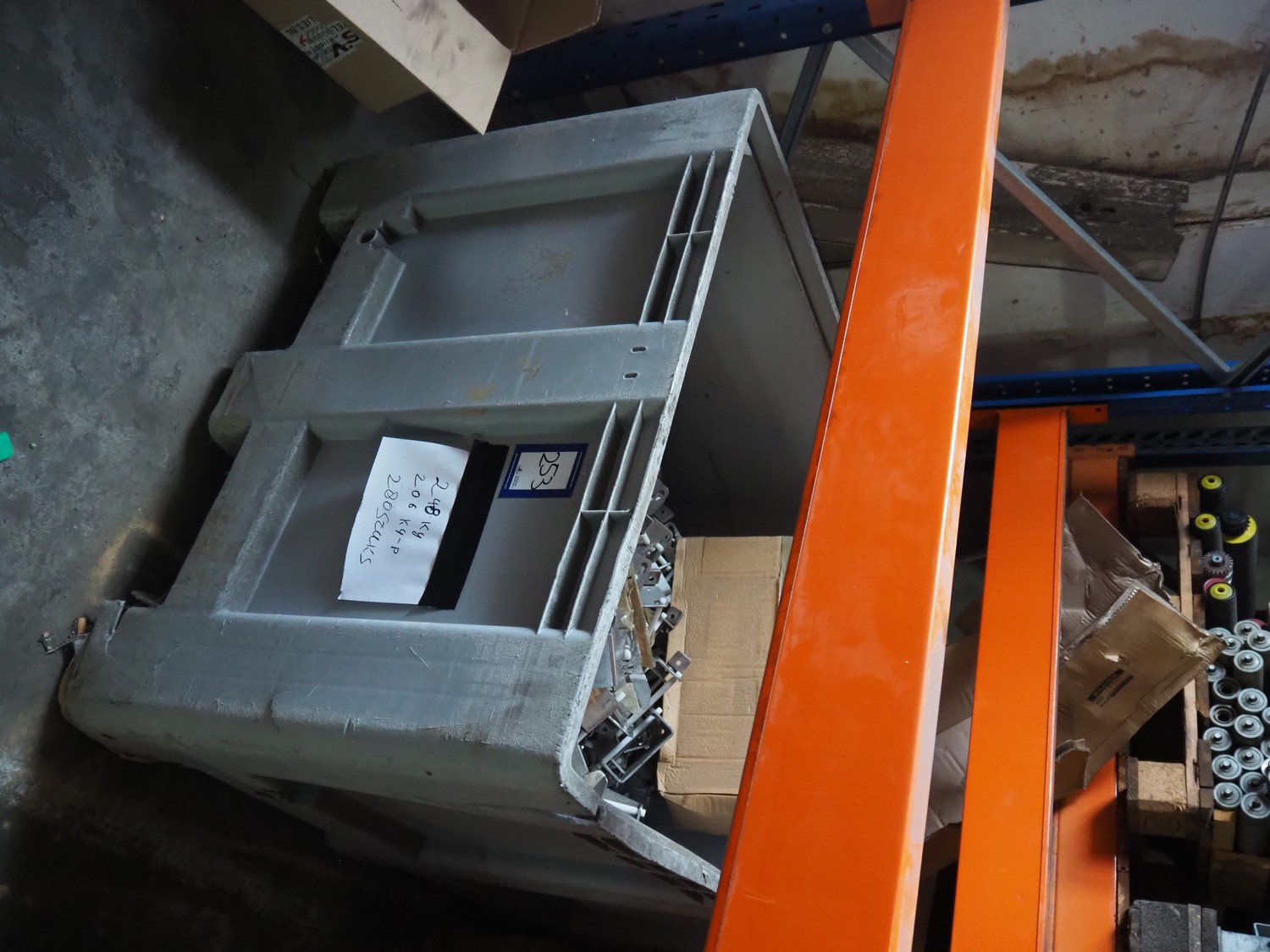 Plastic pallet box with approximately 280 pieces of Stork B.V. intestine shackles.