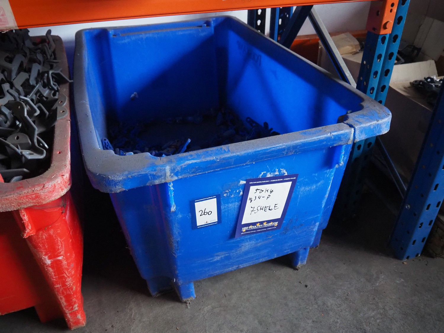 Approximately 75 pieces of trolleys for tube track. Plastic tub not included.