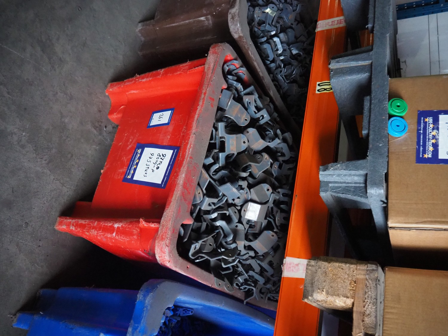 Plastic tub with approximately 975 pieces of plastic shackles.