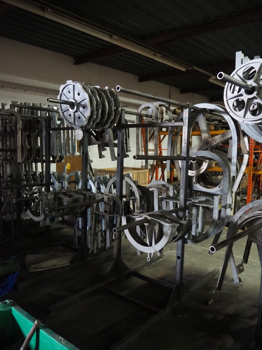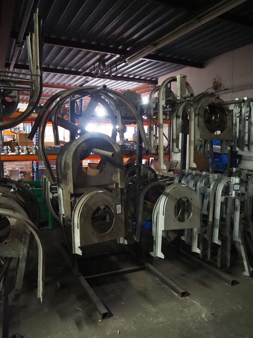 Steel rack with corner wheel segments, wheel diameter: 420 mm, dimensions rack: 1700 mm x 2000 mm x 2450 mm.