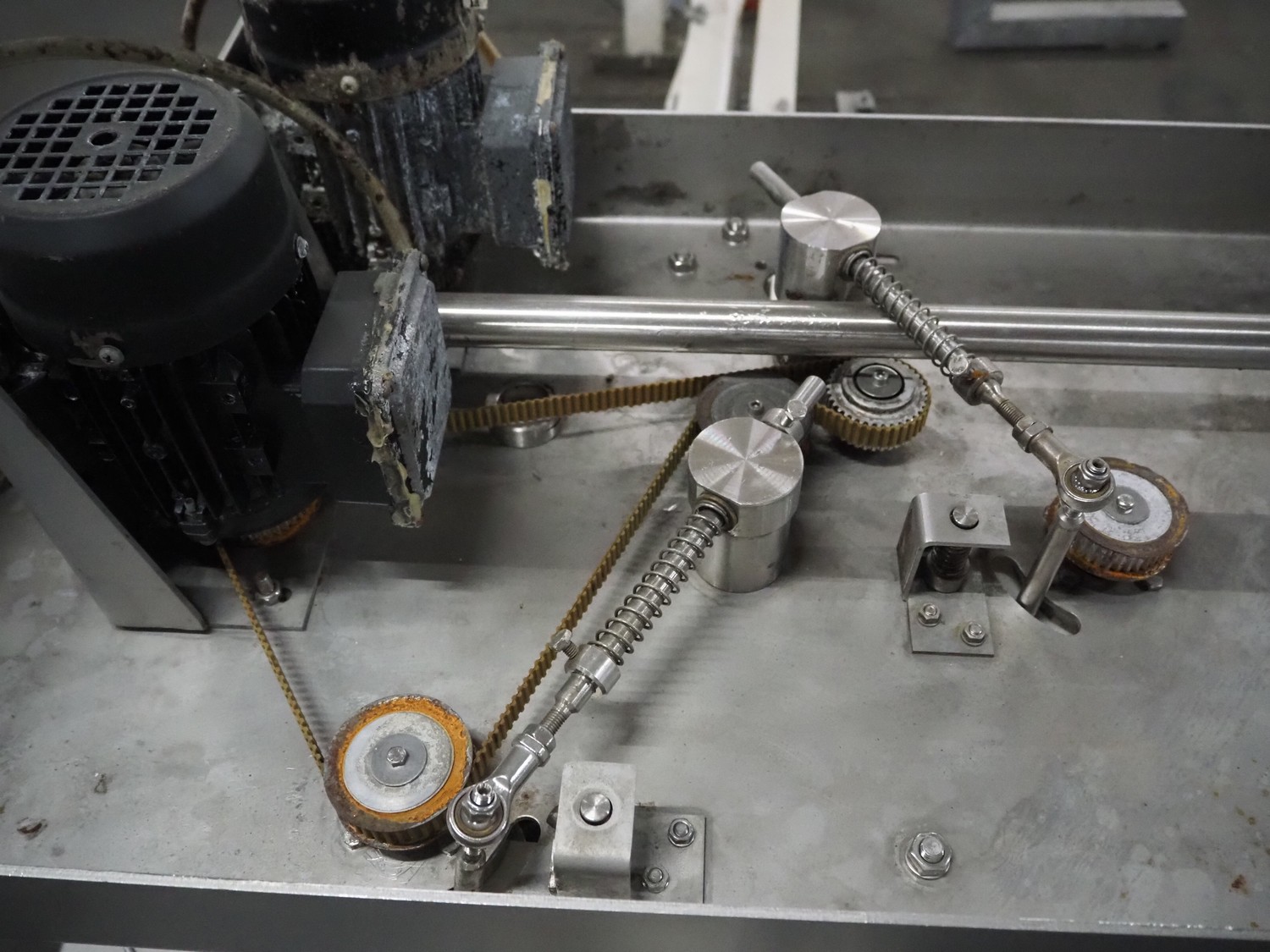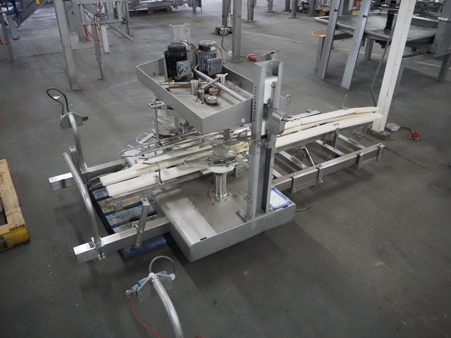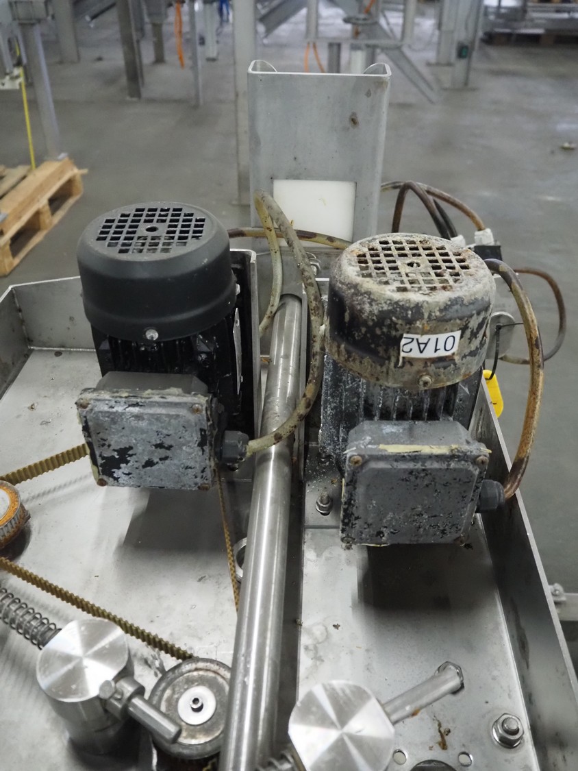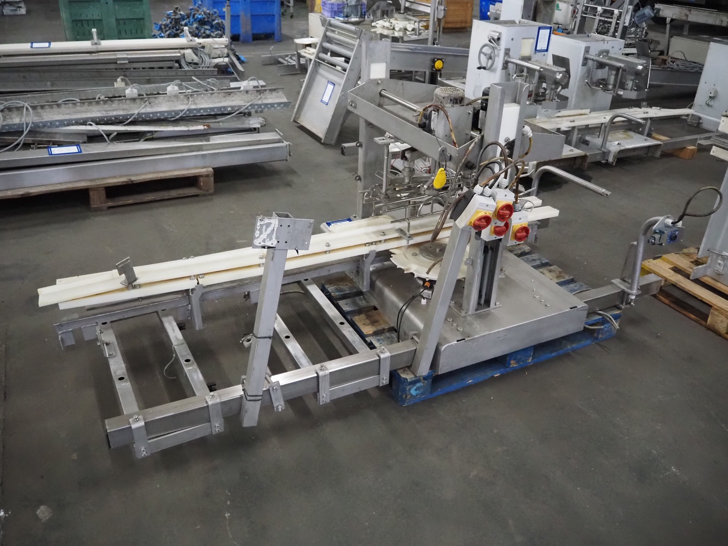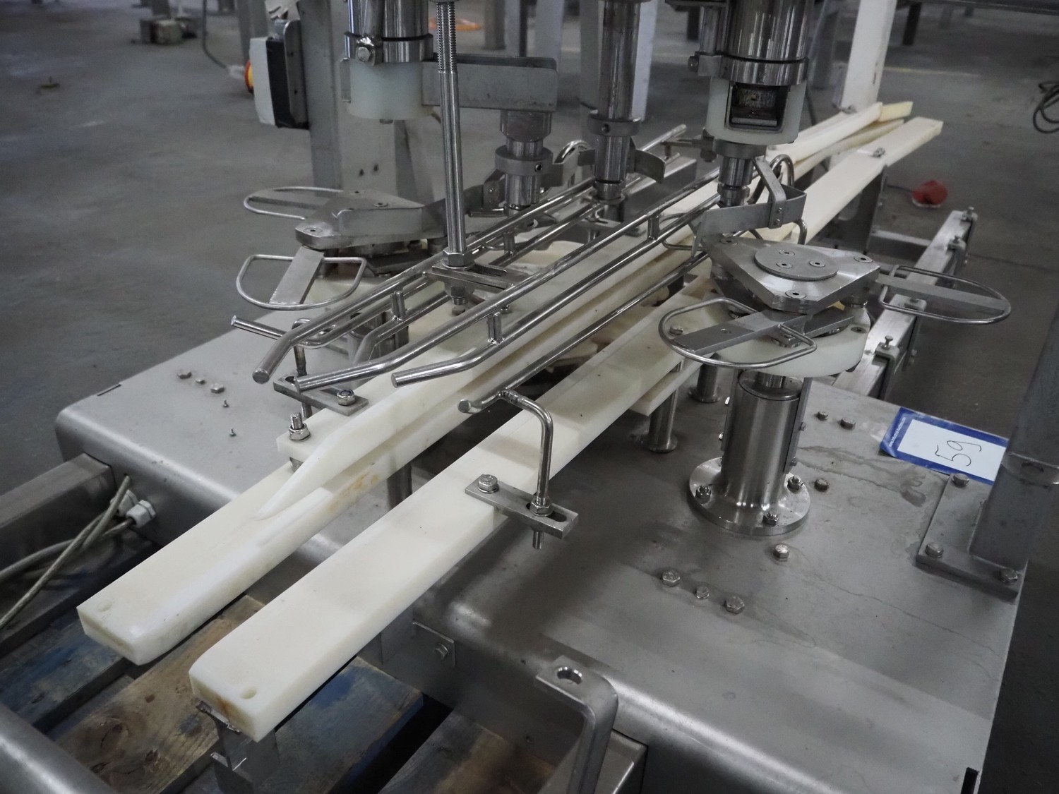 Stork B.V. inline drumstick skin pre cutter, dimensions: 2600 mm x 1500 mm x 1200 mm.