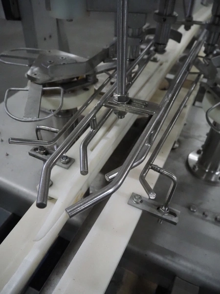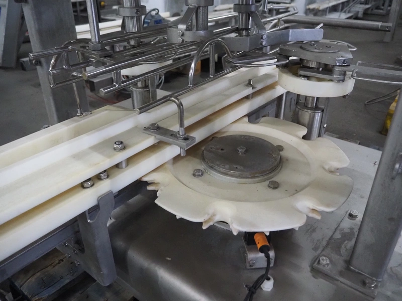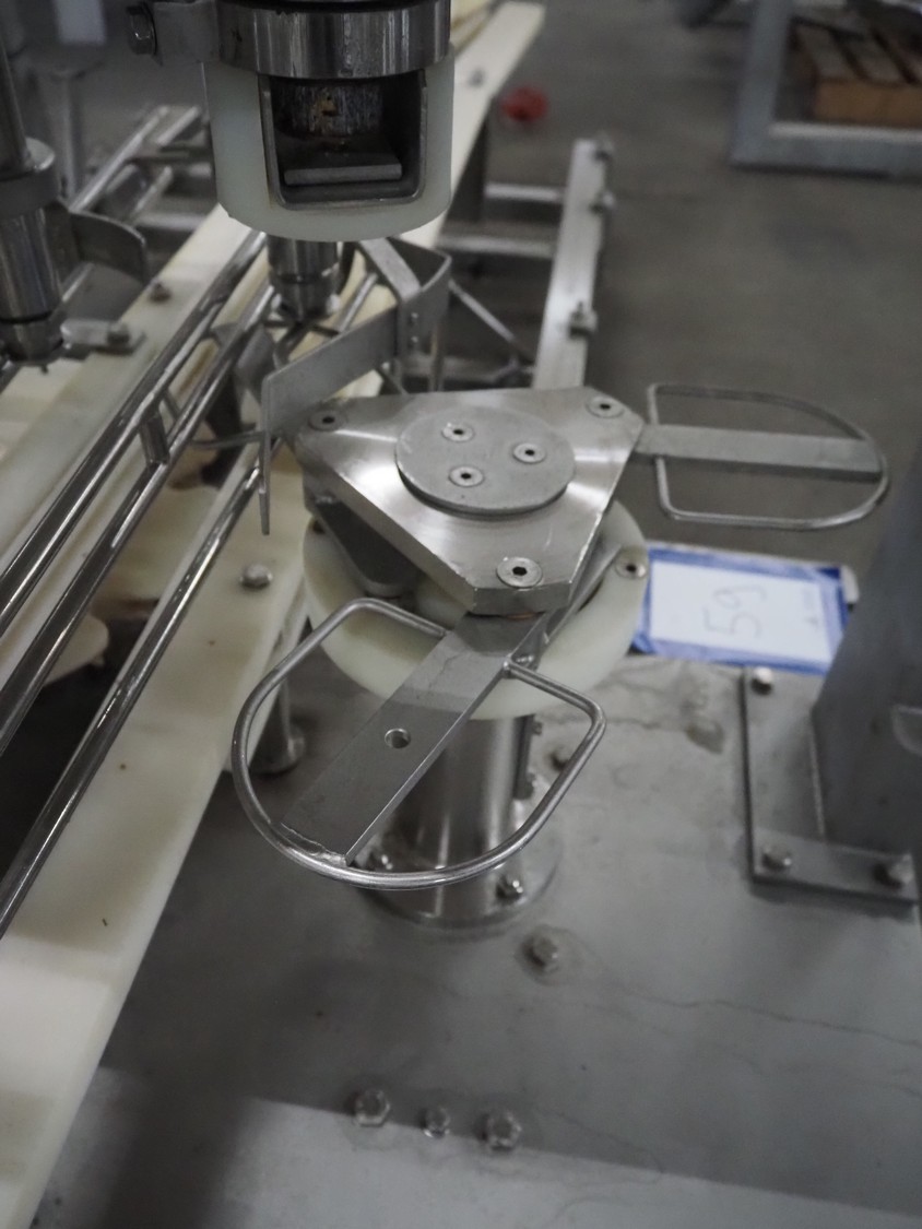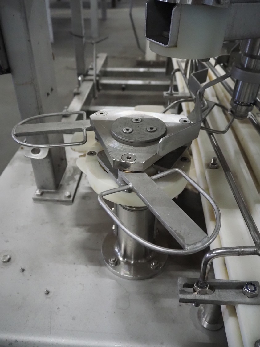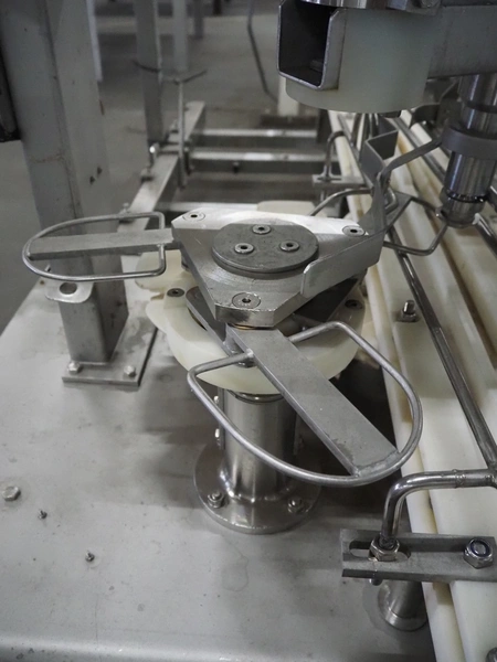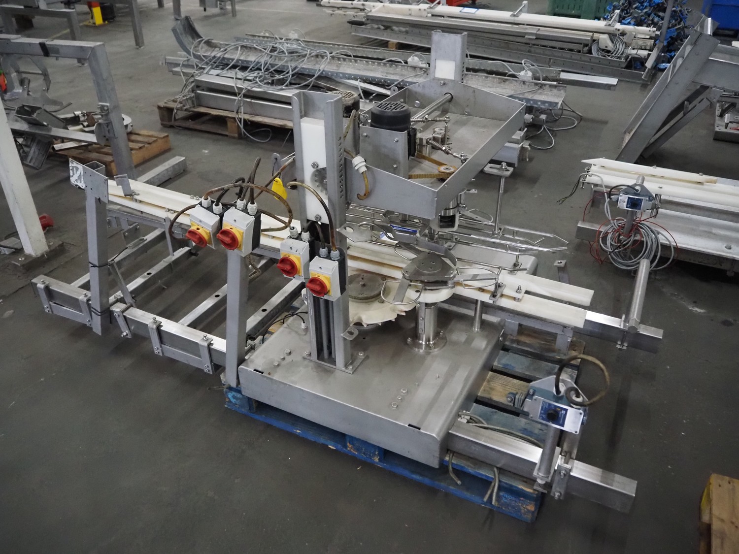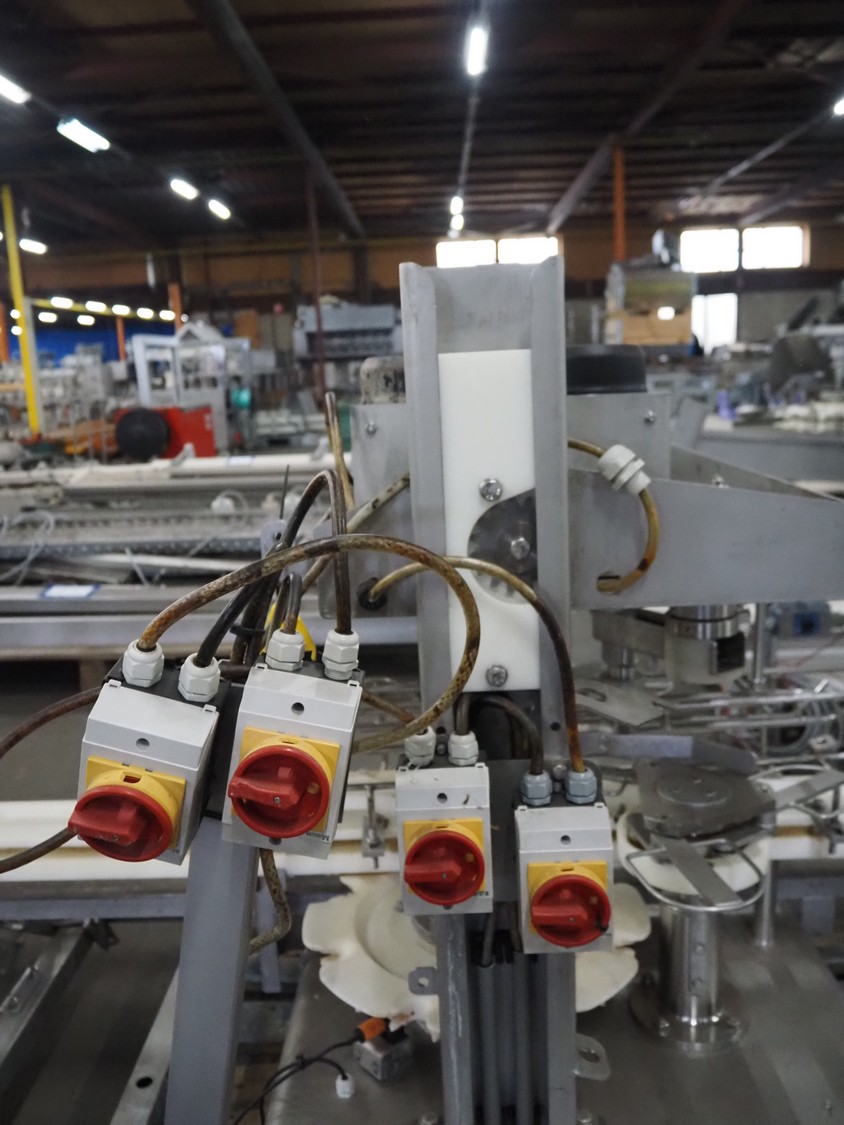 Stork B.V. inline drumstick skin pre cutter, dimensions: 2600 mm x 1500 mm x 1200 mm.