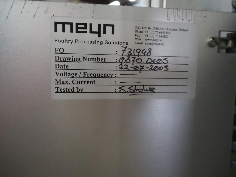 Meyn Mark lll control cabinet, dimensions: 600 mm x 900 mm x 1950 mm.