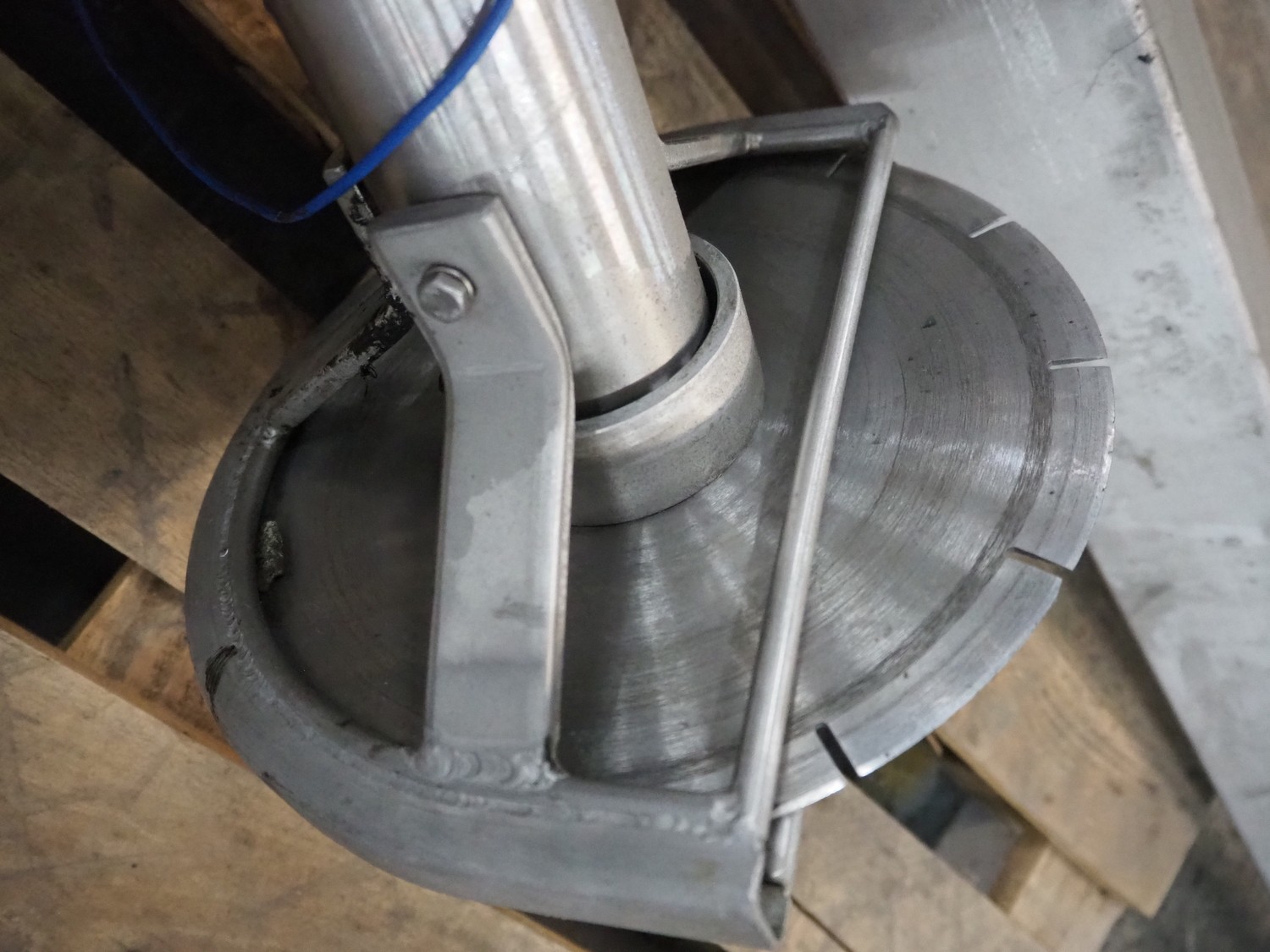 Meyn tail cutter on s/s beam, dimensions: 2400 mm x 550 mm x 550 mm.