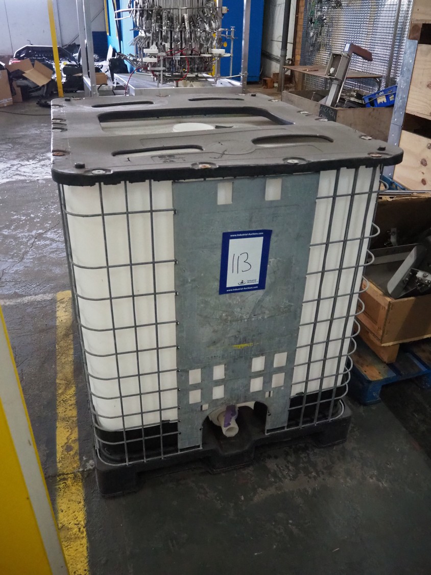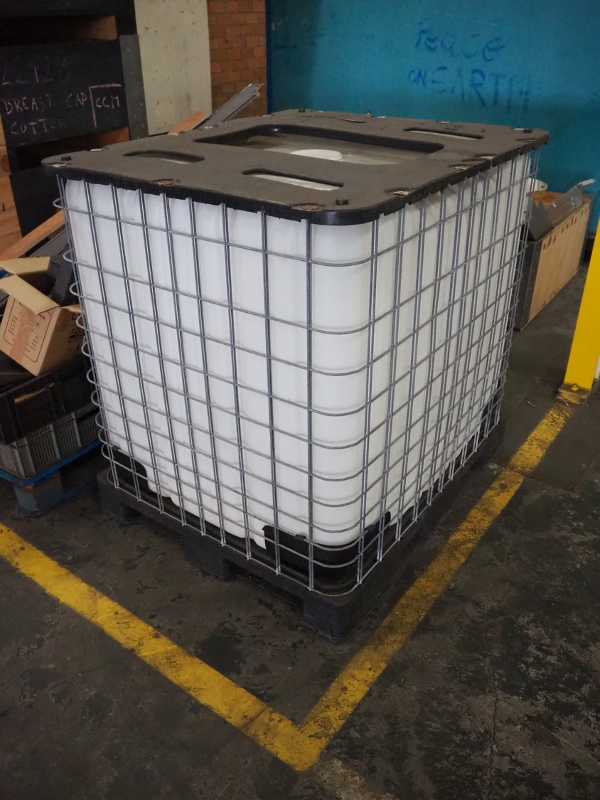 IBC tank, volume: 1000 liter, dimensions: 1200 mm x 1000 mm x 1200 mm.