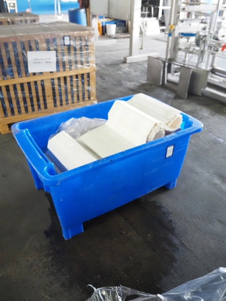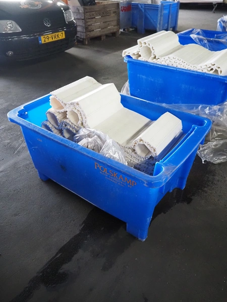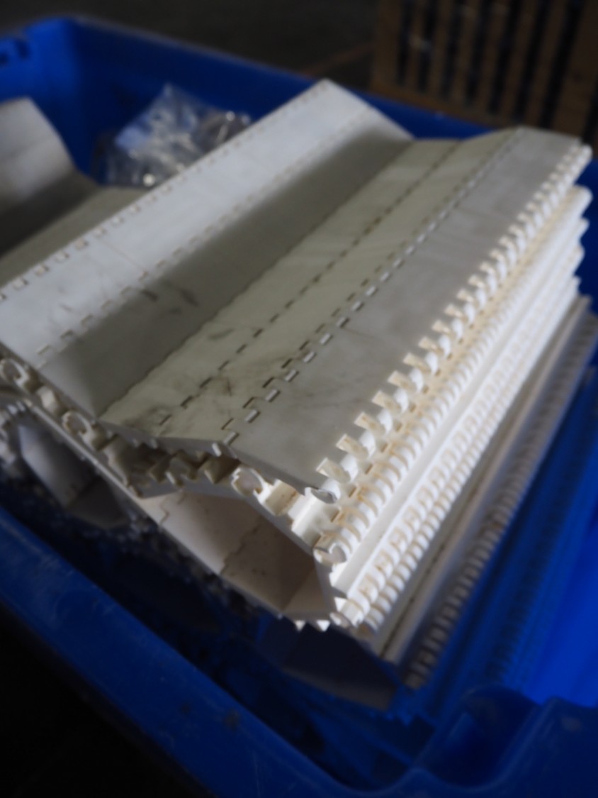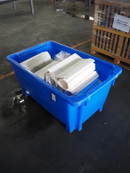 Crate with plastic transport belt, belt width: 400 mm, total dimensions: 1200 mm x 750 mm x 700 mm.