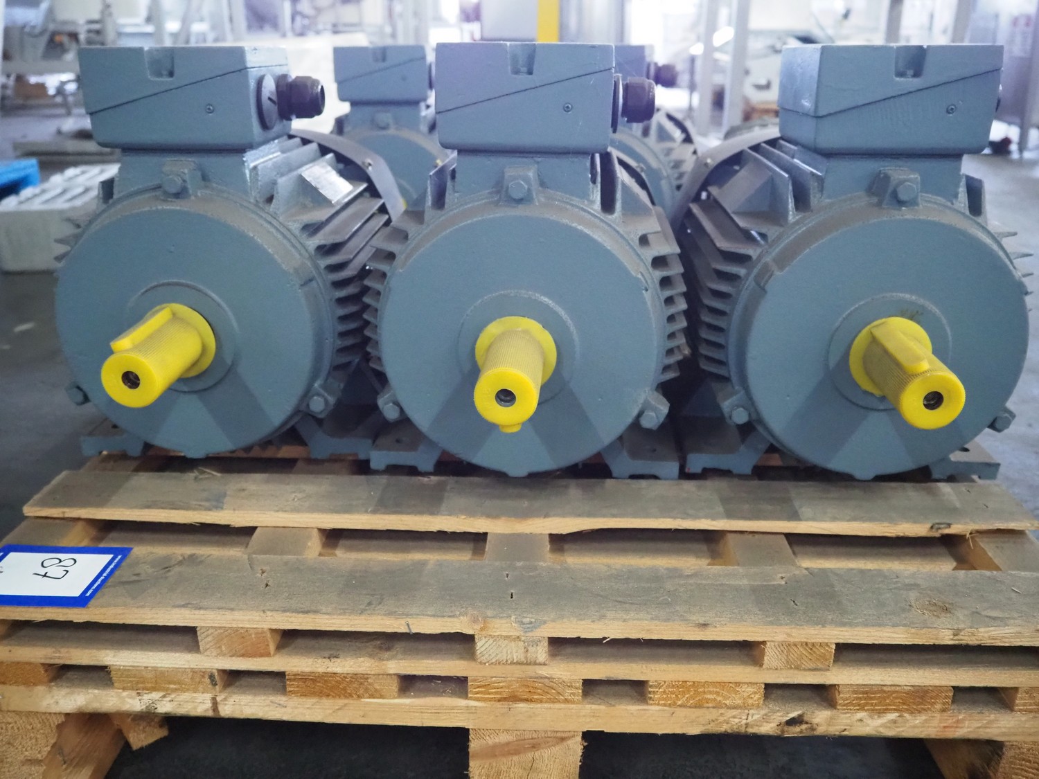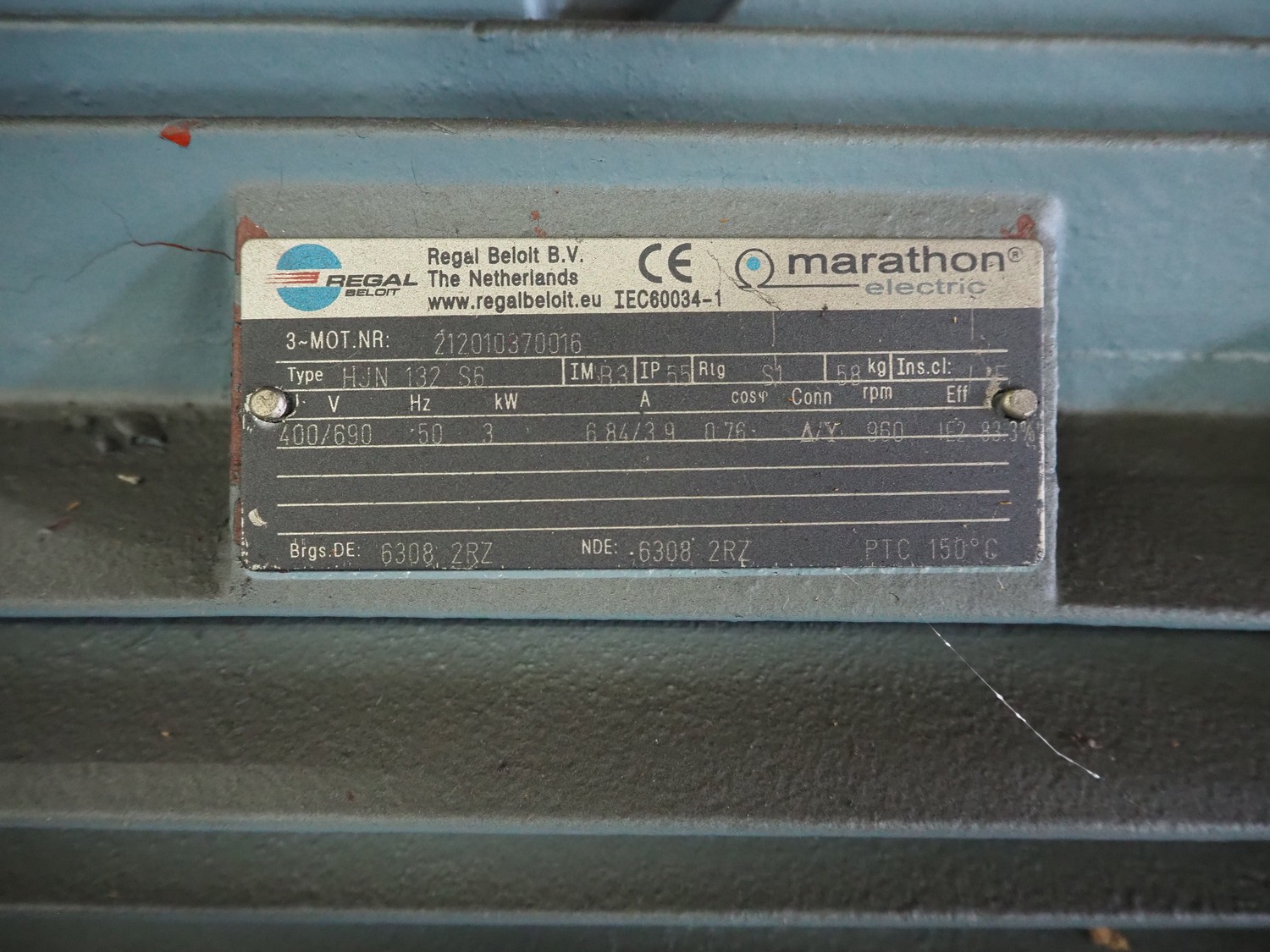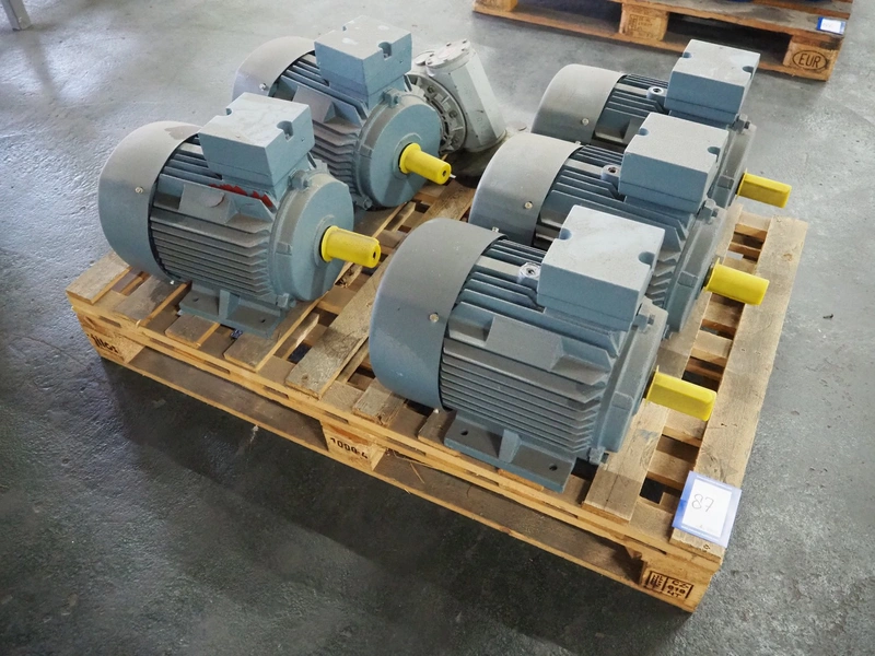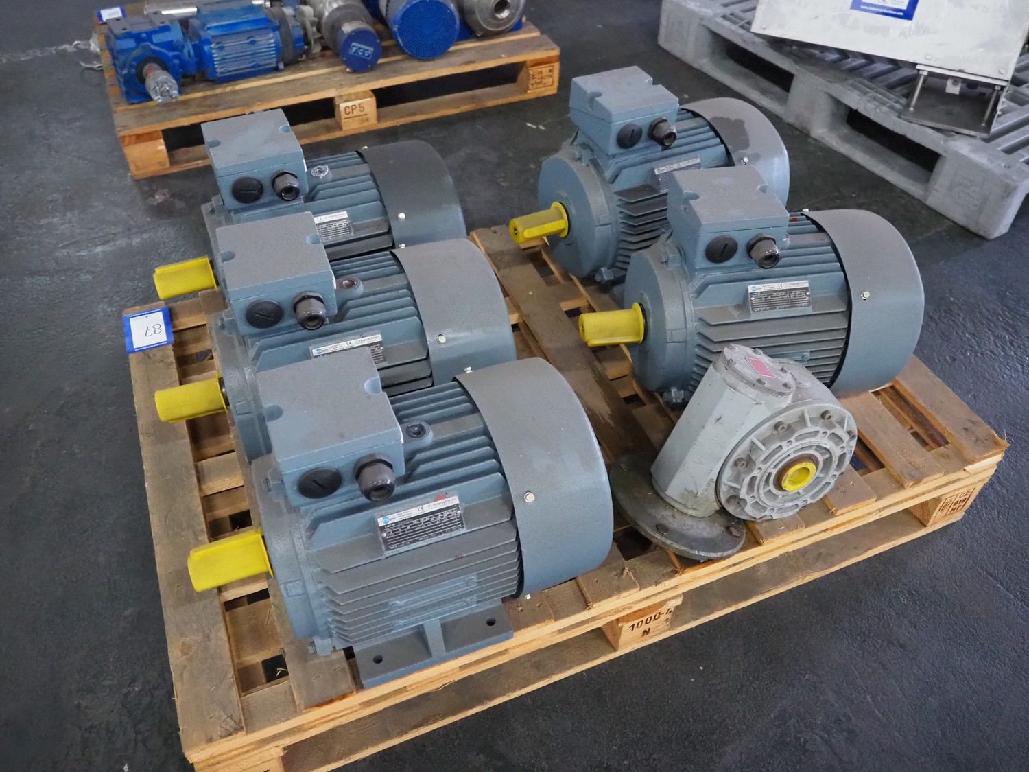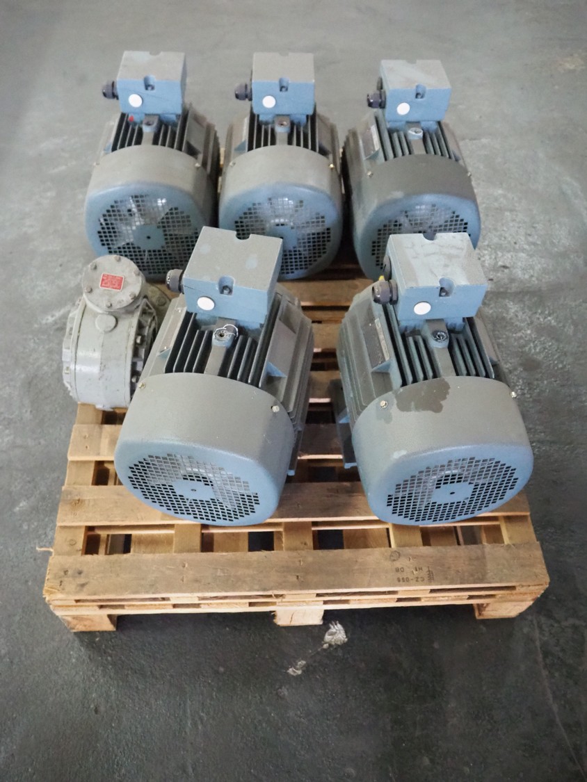 Pallet with 5 Regal Beloid motors, type: HJN 132 S6, 400/690 V, 3 Ph, 50 Hz, 6.84/.39 A, 3 kW, 960 rpm, dimensions: 1200 mm x 800 mm x 500 mm.