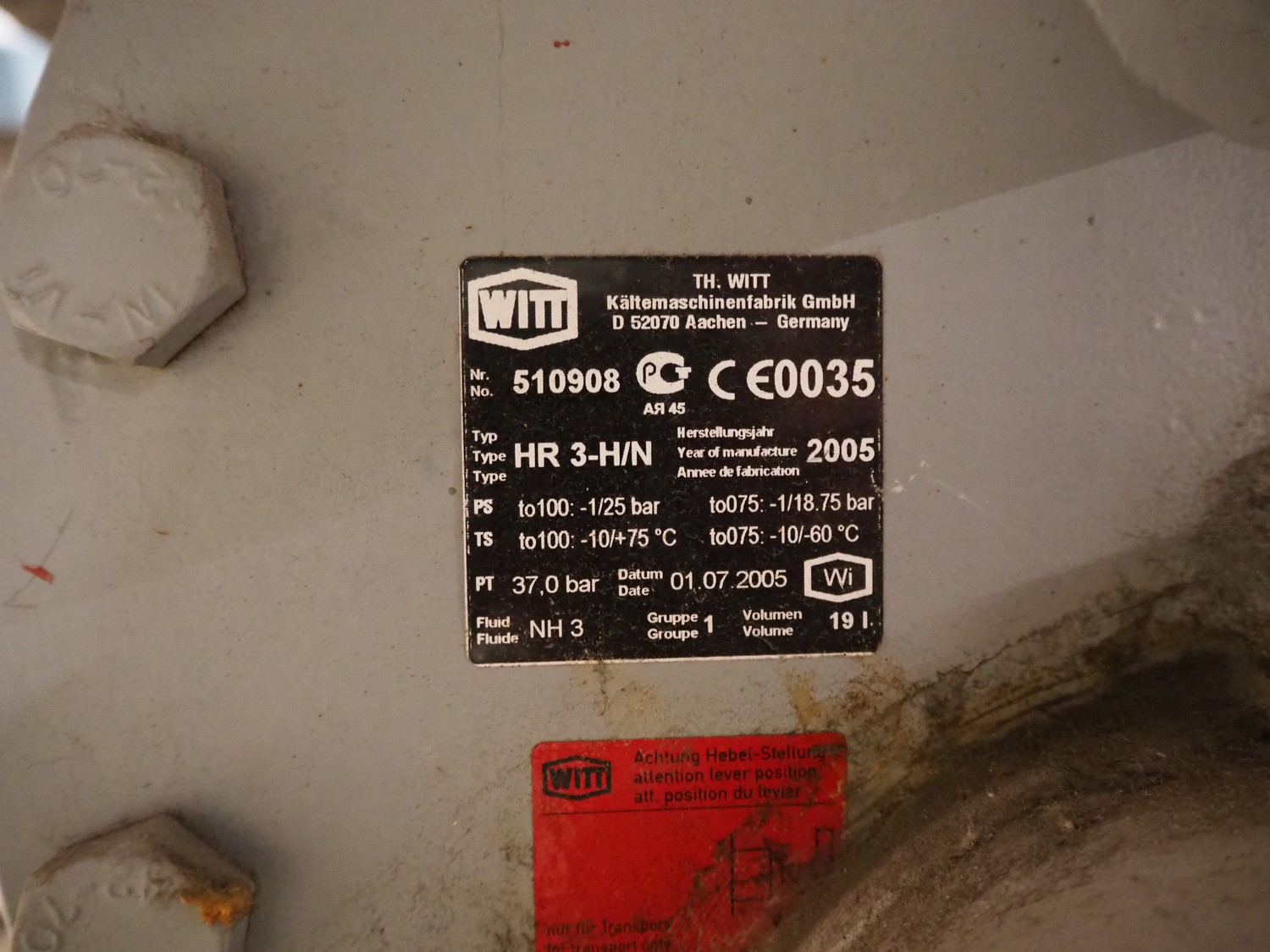Please notice that the 2 WITT kältemaschinenfabrik GmbH float regulators and the pipework are not included.