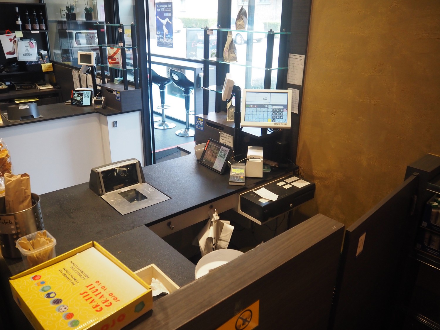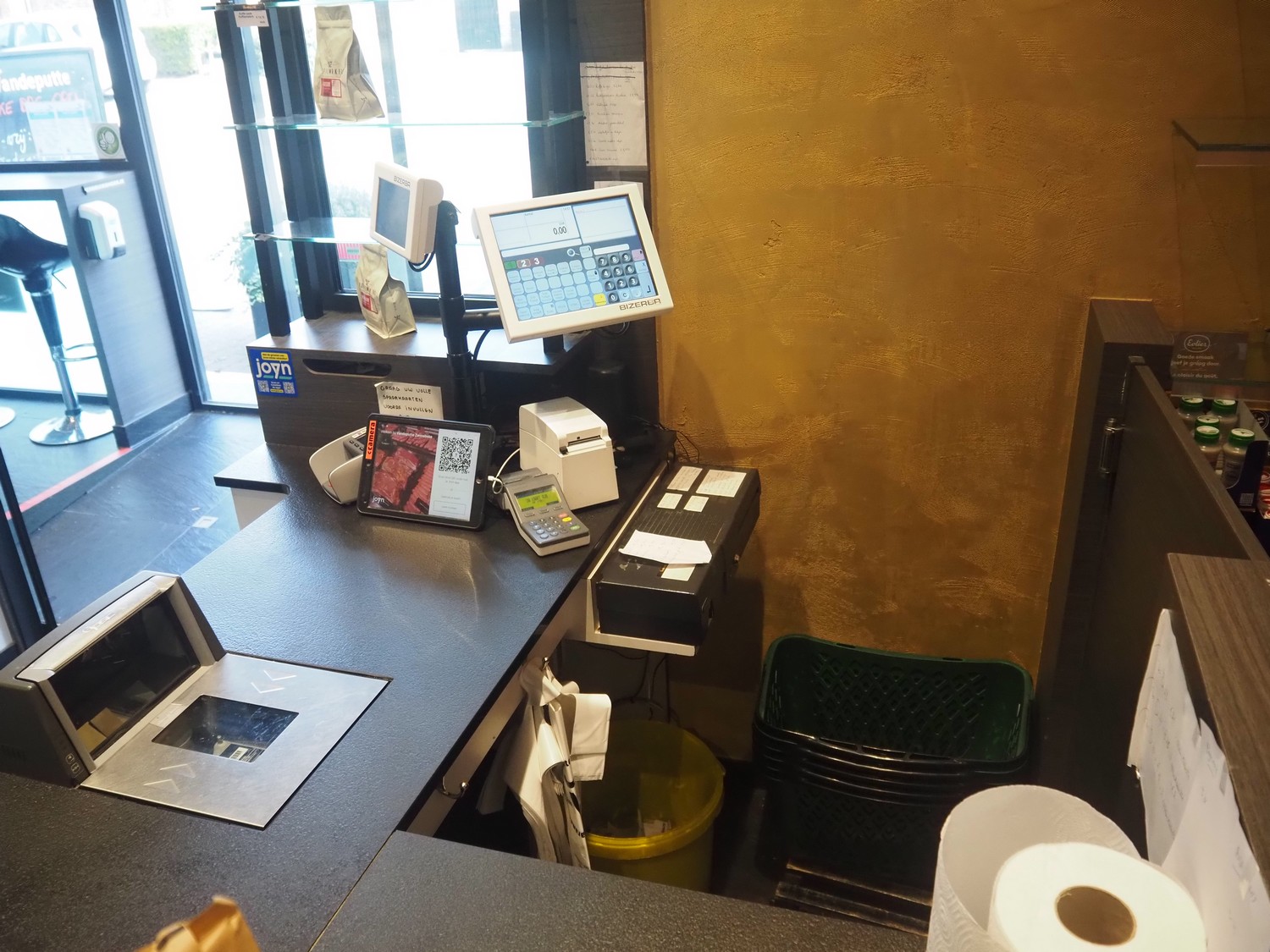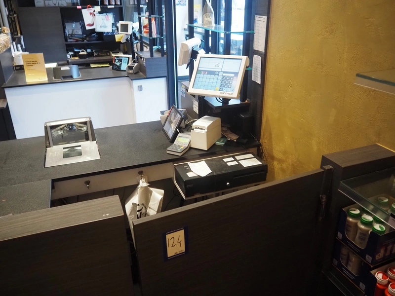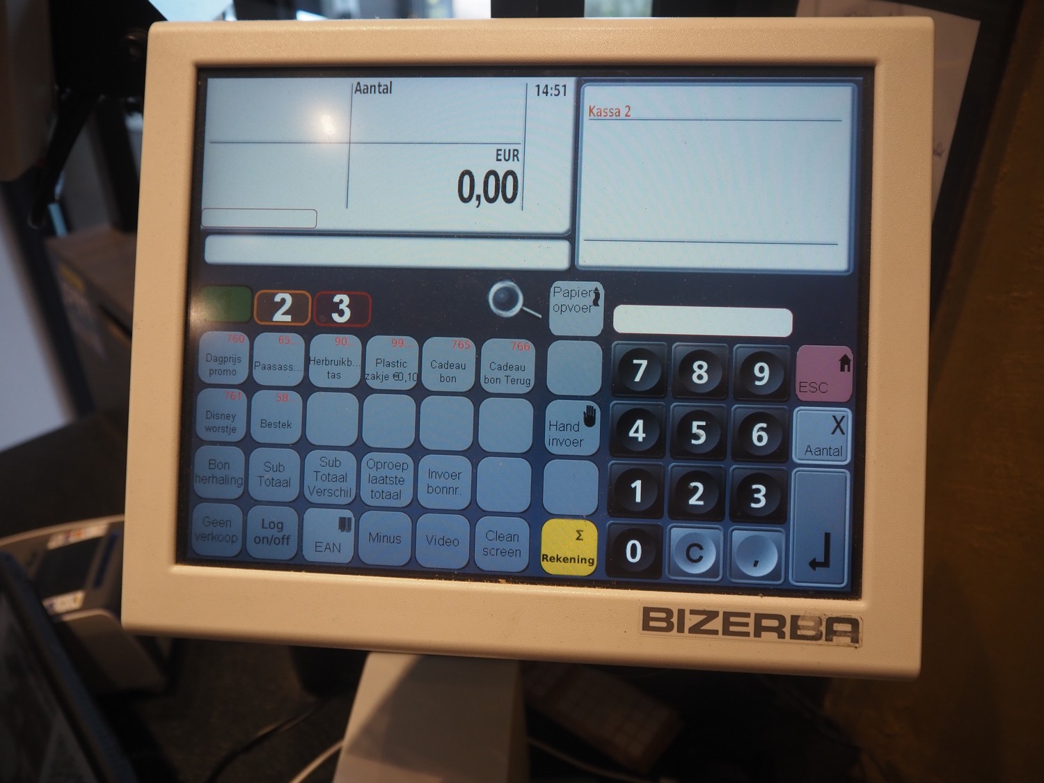 Bizerba cash register, dimensions: 1750 mm x 1700 mm x 1650 mm.