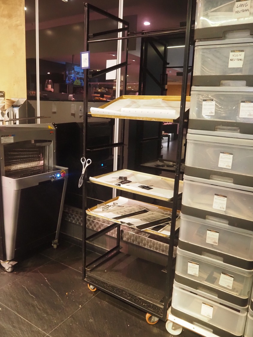 Steel trolley, 7 floors, dimensions: 660 mm x 430 mm x 930 mm.