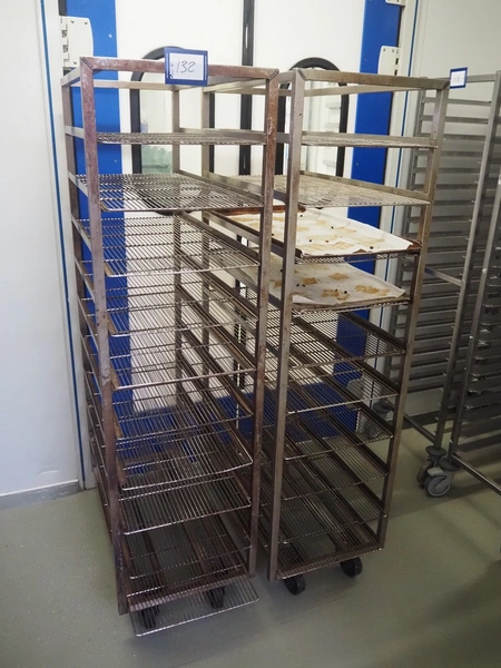 2 s/s trolleys, 10 floors each, dimensions: (2x) 460 mm x 830 mm x 1700 mm.