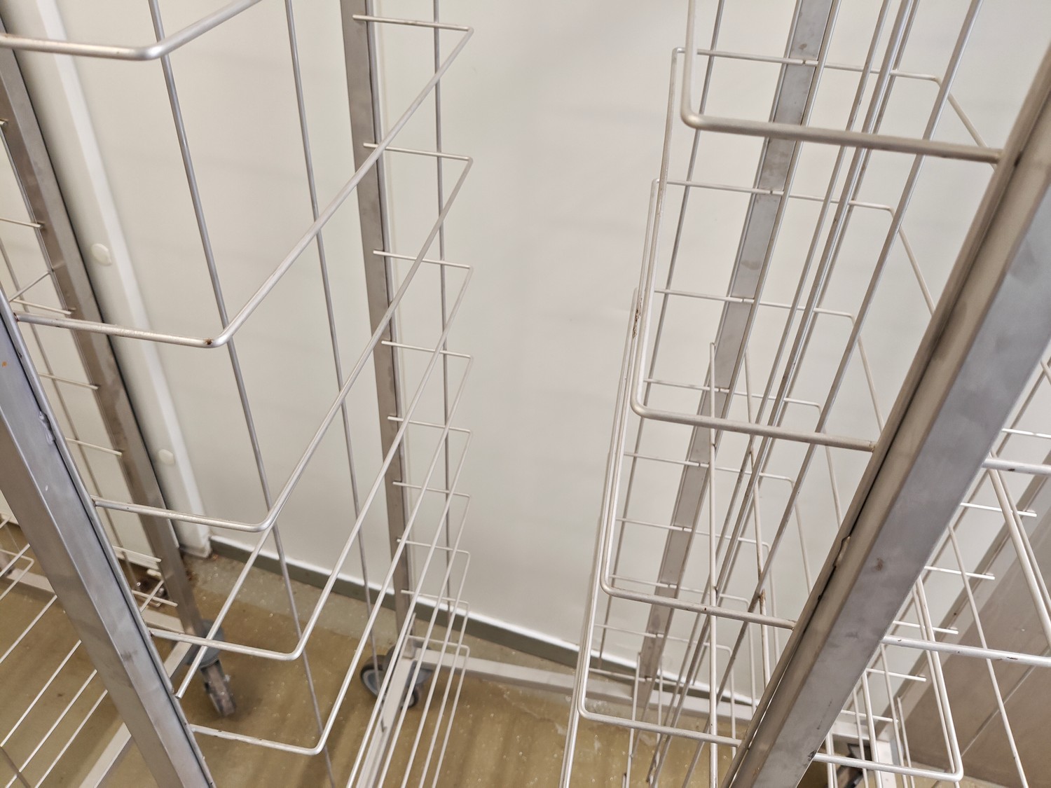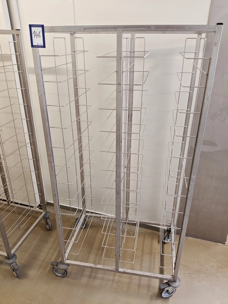 S/s trolley, dimensions floors: 510 mm x 370 mm x 120 mm, total dimensions: 920 mm x 630 mm x 1770 mm.