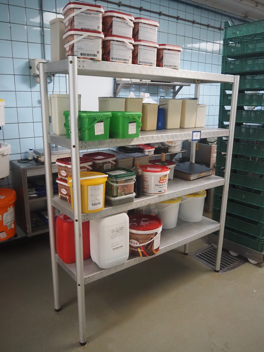 Steel rack, dimensions: 1500 mm x 450 mm x 1800 mm. Without content.