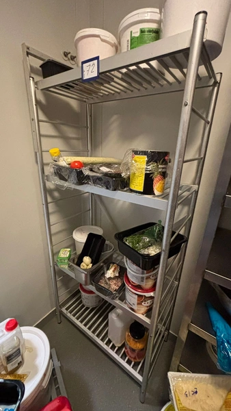 Steel rack, dimensions: 840 mm x 450 mm x 1800 mm. Without content.