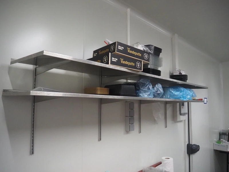 S/s wall mounted rack, dimensions: 2250 mm x 400 mm x 500 mm. Without content.
