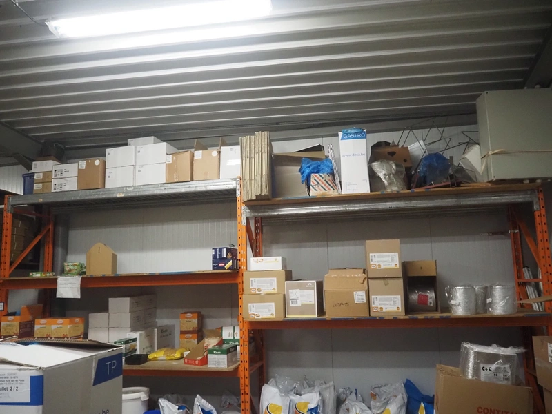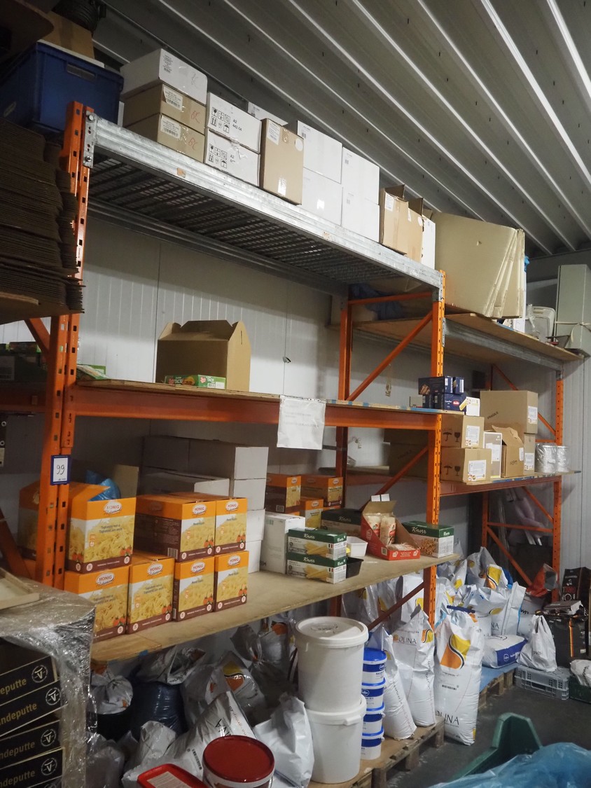Steel rack, dimensions: 5400 mm x 850 mm x 3000 mm. Without content.