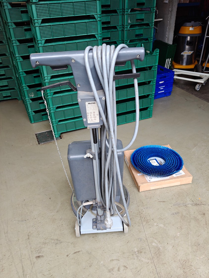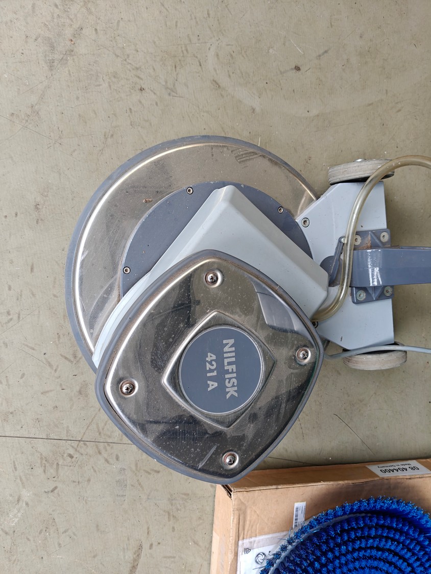 Nilfisk scrubber, type: 421 A , 230 V, 1 Ph, dimensions: 510 mm x 510 mm x 1180 mm.