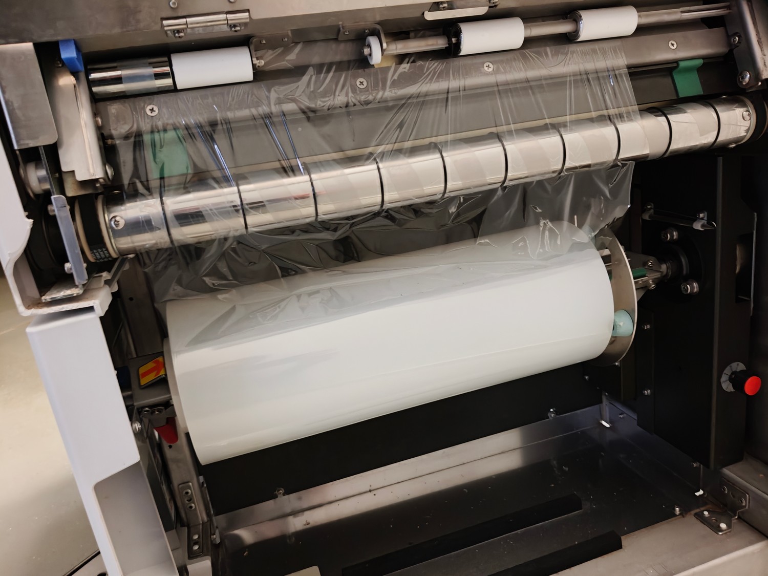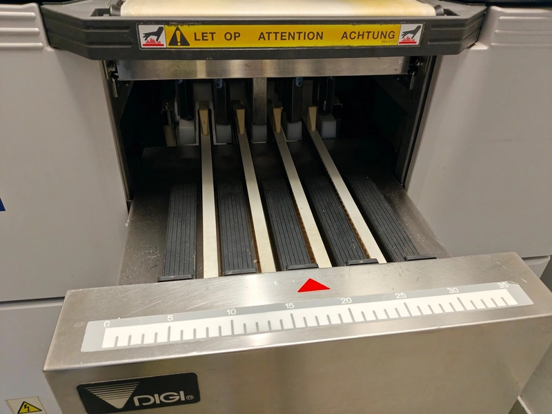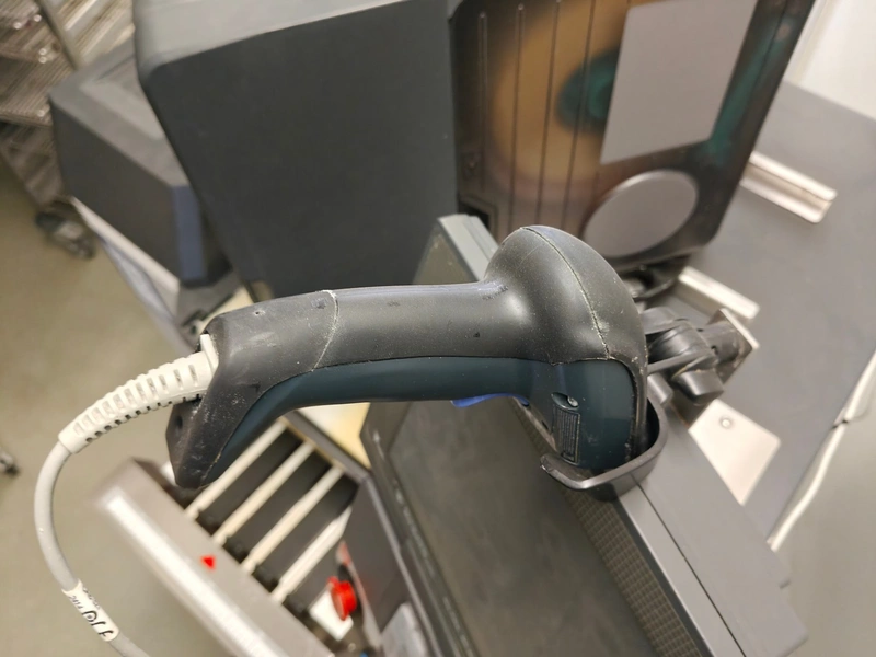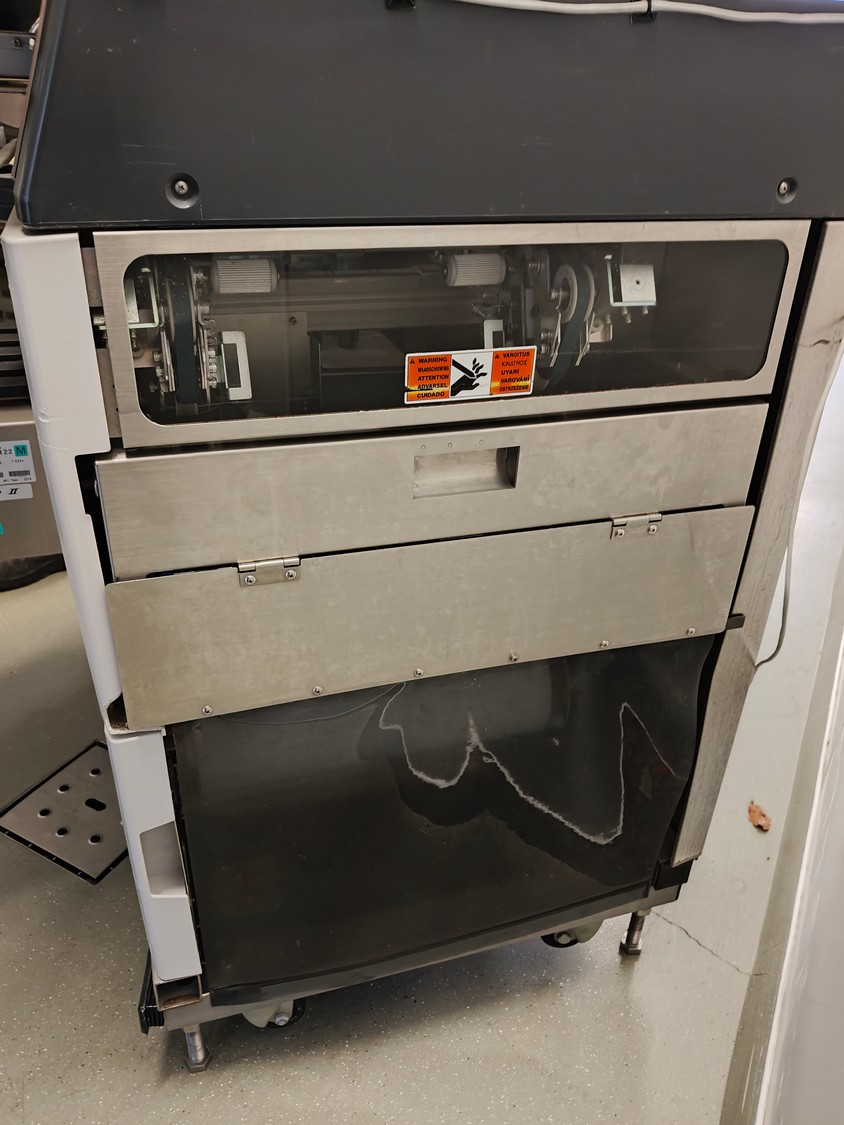 Teraoka Seiko Co., LTD semi automatic weigh, wrap and labelling machine, model: AW-4600CP, serial number: 14172045, year of construction: 2014, 220-240 V, 1 Ph, 50/60 Hz, 5 A, 1.0 kW, maximum weight: 3/6 kg, minimum weight: 20 gram, e=1/2 gram, T=-2.999 kg, dimensions: 1100 mm x 1050 mm x 1500 mm.
