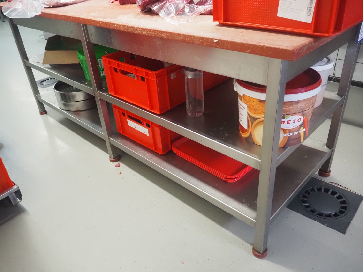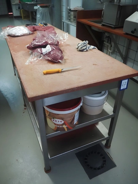 Deboning table, s/s frame, plastic cutting top, dimensions: 2100 mm x 780 mm x 860 mm.